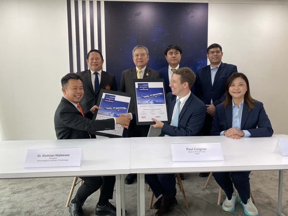 รองศาสตราจารย์ ดร.คมสัน มาลีสี อธิการบดี สจล. กล่าวว่า ความร่วมมือกับ Airbus สะท้อนศักยภาพงานวิจัยของวิทยาลัยอุตสาหกรรมการบินนานาชาติ ที่มีองค์ความรู้ บุคลากร และงานวิจัยขั้นแนวหน้าในการสนับสนุนอุตสาหกรรมการบินยุคใหม่ โดยเฉพาะเทคโนโลยีอากาศยานประหยัดพลังงาน ระบบไฮบริดและไฟฟ้า ตลอดจนระบบอากาศยานอัจฉริยะ ทั้งยังสอดคล้องกับยุทธศาสตร์ประเทศในการพัฒนาอุตสาหกรรมการบินและโลจิสติกส์สู่การเป็นศูนย์กลางการบินของภูมิภาค (Aviation Hub) และการขับเคลื่อนอุตสาหกรรมเทคโนโลยีสะอาดเพื่อการเติบโตอย่างยั่งยืน ซึ่งความร่วมมือระยะเวลา 3 ปี ครั้งนี้ สจล. ร่วมกับมหาวิทยาลัยเกษตรศาสตร์ และ Airbus พัฒนาหลักสูตรด้านการสนับสนุนการปฏิบัติการบิน (Flight Operations Support) จากมุมมองผู้ผลิตอากาศยานโดยตรง เพื่อให้นักศึกษาได้เรียนรู้กระบวนการทำงานจริงในอุตสาหกรรมการบินระดับสากล