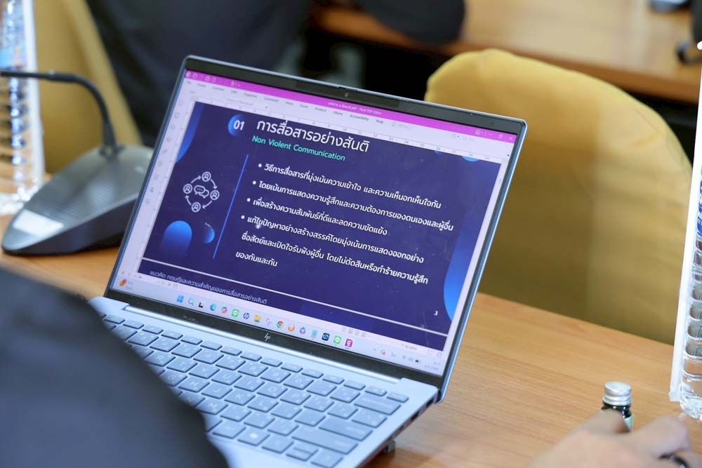 บรรยากาศเป็นไปอย่างเข้มข้น ผู้เข้าอบรมให้ความสนใจเป็นอย่างมาก มีการสอบถามเกี่ยวกับกรณีศึกษาการไกล่เกลี่ยข้อพิพาทด้วยสันติวิธี อย่างตั้งใจ