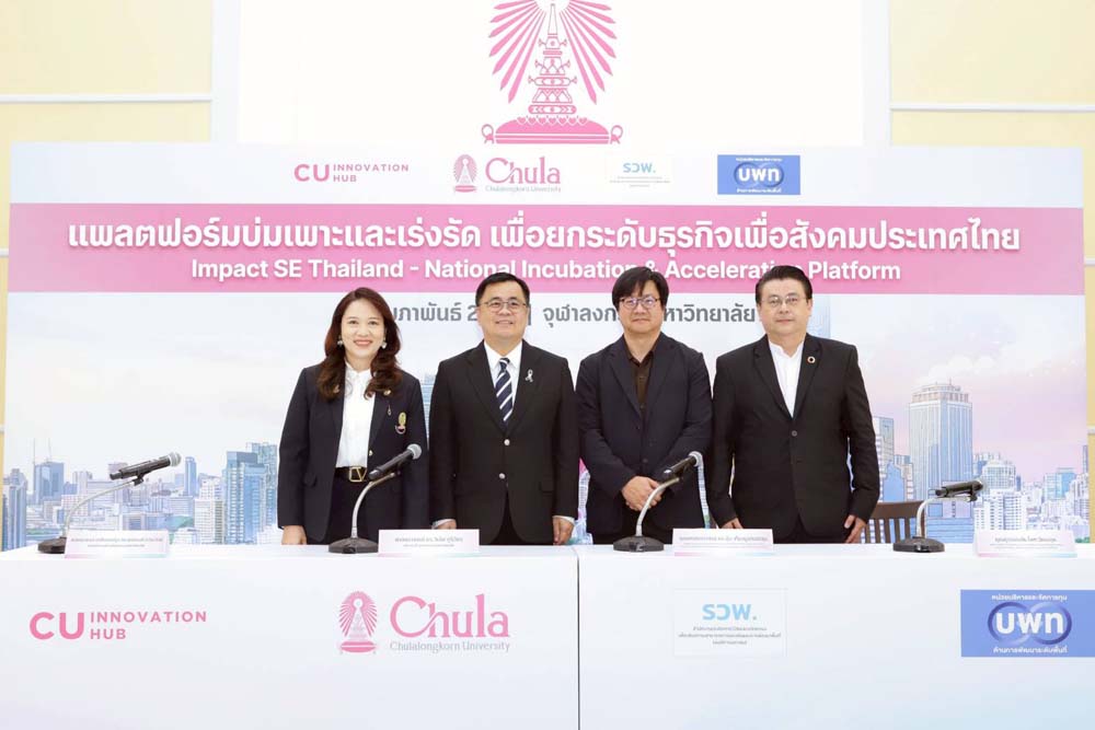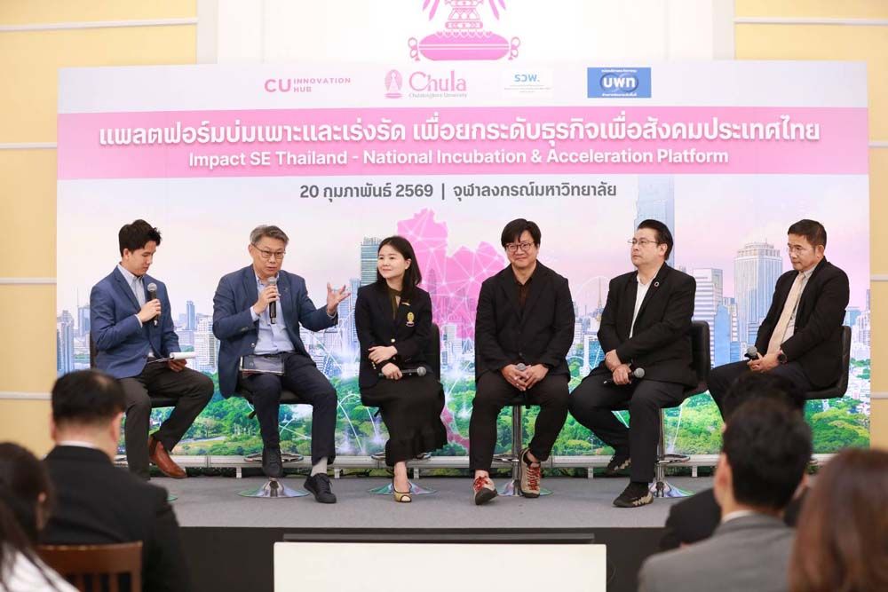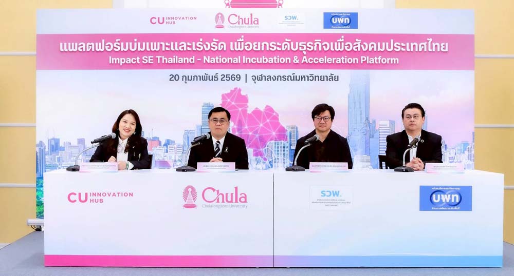 จุฬาลงกรณ์มหาวิทยาลัย ร่วมกับ หน่วยบริหารจัดการทุนด้านการพัฒนาพื้นที่ (บพท.) จัดพิธีแถลงข่าวการจัดตั้ง “แพลตฟอร์มบ่มเพาะและเร่งรัดเพื่อยกระดับธุรกิจเพื่อสังคมไทย (Impact SE Thailand - National Incubation & Acceleration Platform)” อย่างเป็นทางการ ในวันที่ 20 กุมภาพันธ์ 2569 ณ เรือนจุฬานฤมิต จุฬาลงกรณ์มหาวิทยาลัย โดยมีศาสตราจารย์ ดร.วิเลิศ ภูริวัชร อธิการบดีจุฬาลงกรณ์มหาวิทยาลัย เป็นประธานในพิธี พร้อมด้วยศาสตราจารย์ เภสัชกรหญิง ดร.พรอนงค์ อร่ามวิทย์ รองอธิการบดีจุฬาลงกรณ์มหาวิทยาลัย และ รองศาสตราจารย์ ดร.ปุ่น เที่ยงบูรณธรรม รองผู้อำนวยการ ฝ่ายแผนและยุทธศาสตร์องค์กร หน่วยบริหารจัดการทุนด้านการพัฒนาพื้นที่ สำนักงานเร่งรัดการวิจัยและนวัตกรรมเพื่อเพิ่มความสามารถการแข่งขันและการพัฒนาพื้นที่ (องค์การมหาชน) ตลอดจนผู้แทนหน่วยงานภาครัฐ ภาคเอกชน เครือข่ายนักลงทุน ผู้ประกอบการเพื่อสังคม นักวิจัย และภาคประชาสังคมเข้าร่วมงานอย่างคับคั่ง