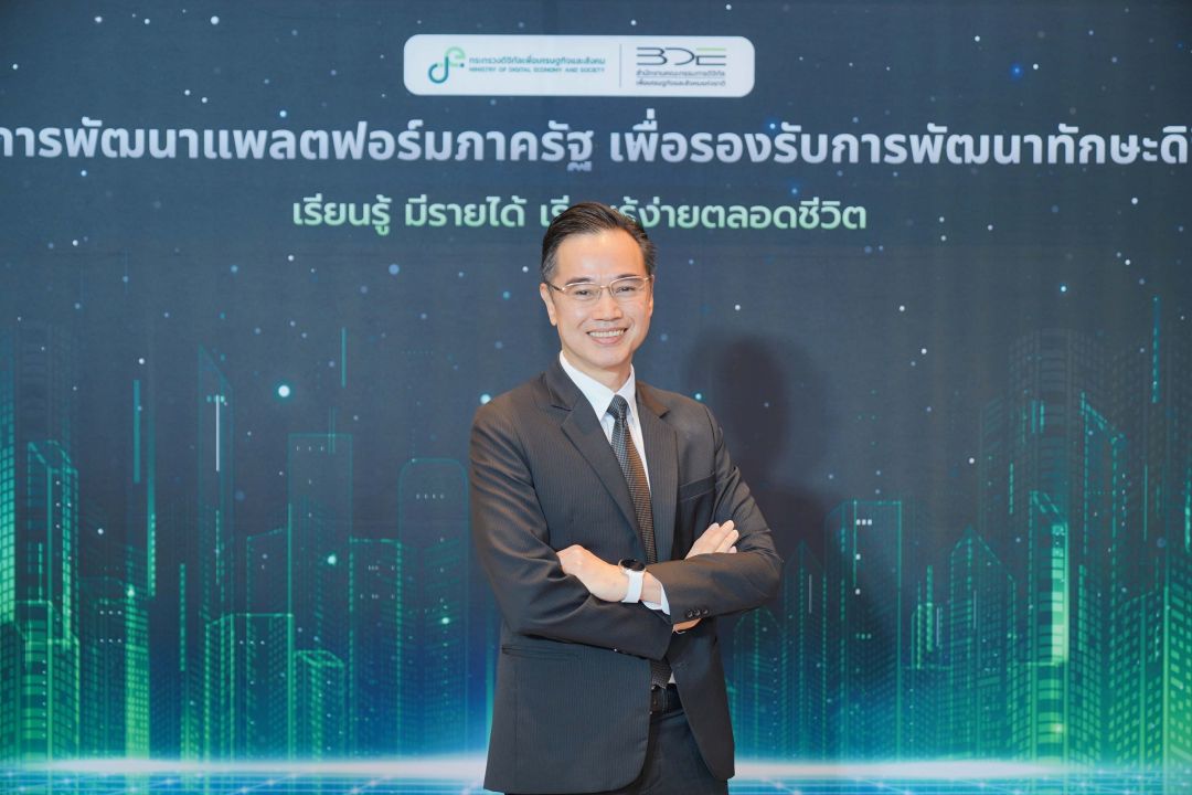 กระทรวงดิจิทัลเพื่อเศรษฐกิจและสังคม โดยสำนักงานคณะกรรมการดิจิทัลเพื่อเศรษฐกิจและสังคมแห่งชาติ (BDE : National Board of Digital Economy and Society) จัดงานแถลงข่าวเปิดตัวและพิธีลงนามบันทึกความเข้าใจ (MOU) “โครงการพัฒนาแพลตฟอร์มภาครัฐเพื่อรองรับการพัฒนาทักษะดิจิทัล เรียนรู้ มีรายได้ เรียนรู้ง่ายตลอดชีวิต หรือ BDE Learn to Earn” ณ ห้องประชุม Asawin Ballroom A โรงแรม Asawin Grand Convention กรุงเทพฯ โดยมีนายเวทางค์ พ่วงทรัพย์ เลขาธิการคณะกรรมการดิจิทัลเพื่อเศรษฐกิจและสังคมแห่งชาติ เป็นประธานในพิธีเปิด พร้อมด้วยนางสาวพลอยรวี เกริกพันธ์กุล ผู้อำนวยการกองขับเคลื่อนดิจิทัลเพื่อสังคม กล่าวรายงานวัตถุประสงค์และแนวทางดำเนินโครงการ โดยผู้เข้าร่วมงานมาจากทั้งหน่วยงานภาครัฐ ภาคเอกชน สถาบันการศึกษา และสื่อมวลชน