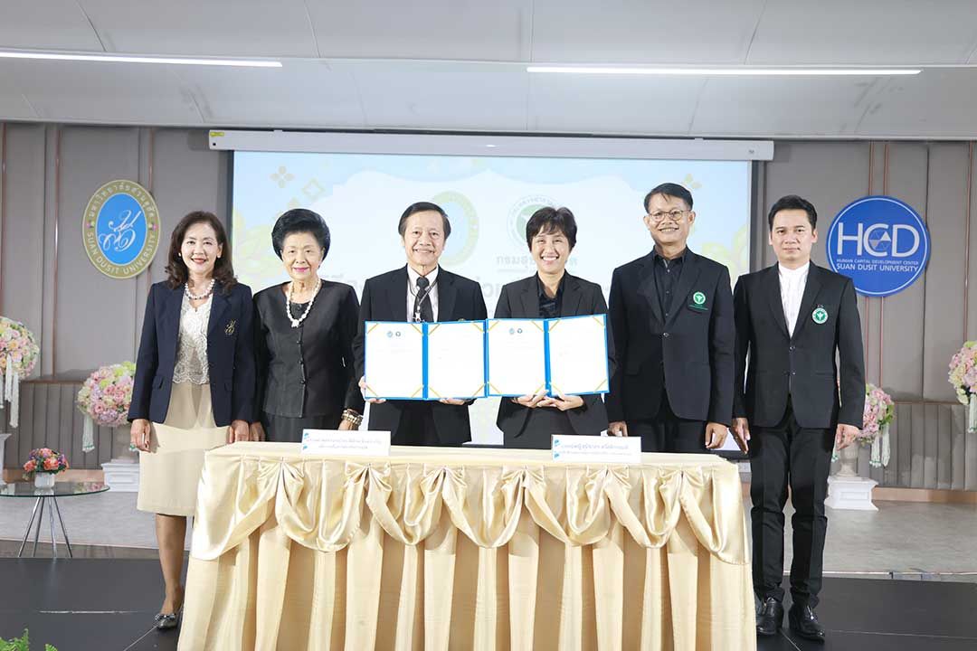 ผศ.ดร.พิทักษ์ จันทร์เจริญ อธิการบดีมหาวิทยาลัยสวนดุสิต และแพทย์หญิงณิชาภา สวัสดิกานนท์ รองอธิบดีกรมสุขภาพจิต กระทรวงสาธารณสุข ลงนามบันทึกข้อตกลงความร่วมมือทางวิชาการ (MOU) เพื่อร่วมกันพัฒนางานด้านการอบรม การเสริมสร้างศักยภาพ และการส่งเสริมสุขภาวะทางจิตสำหรับนักศึกษาและบุคลากรของมหาวิทยาลัยอย่างเป็นระบบและยั่งยืน โดยมีผู้บริหารจากสองหน่วยงานเป็นพยานในพิธีลงนาม ได้แก่ รศ.พัชรี สวนแก้ว รองอธิการบดีฝ่ายกิจการนักศึกษา มหาวิทยาลัยสวนดุสิต ผศ.ดร.พรชณิตว์ แก้วเนตร รองอธิการบดีฝ่ายวิชาการและกิจการต่างประเทศ มหาวิทยาลัยสวนดุสิต นายแพทย์พงศกร เล็งดี ผู้อำนวยการศูนย์สุขภาพจิตที่ 13 กรมสุขภาพจิต และ นายธนโชติ เทียมแสง นักวิชาการสาธารณสุขชำนาญการ หัวหน้ากลุ่มงานวิชาการสุขภาพจิต ศูนย์สุขภาพจิตที่ 13 ซึ่งจัดขึ้นเมื่อวันพฤหัสบดีที่ 26 กุมภาพันธ์ พ.ศ. 2569 ณ ห้อง 301 ศูนย์พัฒนาทุนมนุษย์ อาคาร ดร.ศิโรจน์ ผลพันธิน มหาวิทยาลัยสวนดุสิต