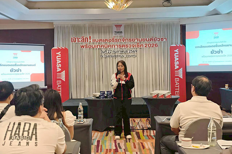 บริษัท ยัวซ่า แบตเตอรี่ ประเทศไทย จำกัด จัดกิจกรรมภายใต้ชื่อ “เจาะลึก! แบตเตอรี่รถจักรยานยนต์ยัวซ่า พร้อมเทคนิคการตรวจเช็ค 2026” ยกระดับความรู้ตัวแทนจำหน่ายภาคอีสาน ตอกย้ำผู้นำตลาดแบตเตอรี่รถมอเตอร์ไซค์คุณภาพสูง เพื่อเสริมสร้างองค์ความรู้ด้าน แบตเตอรี่รถมอเตอร์ไซค์ ให้กับตัวแทนจำหน่ายและเครือข่าย ร้านแบตมอเตอร์ไซค์ ในพื้นที่ภาคตะวันออกเฉียงเหนือ ณ โรงแรมพูลแมน จังหวัดขอนแก่น