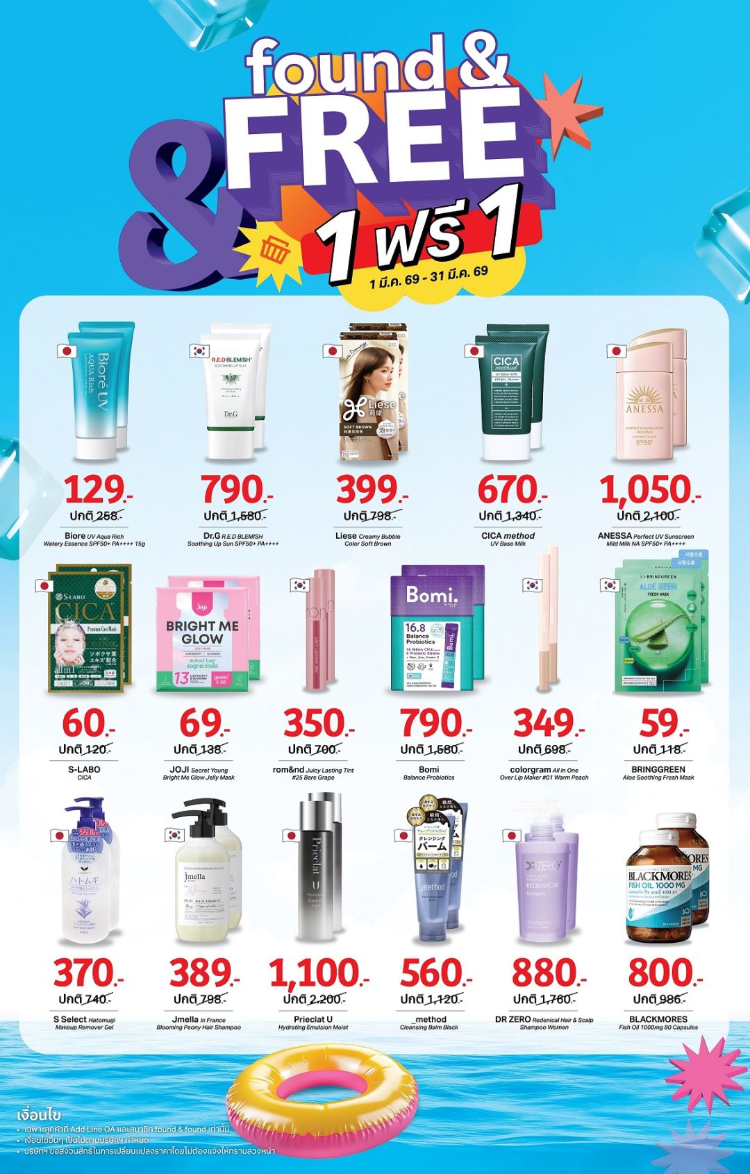 found & found เอาใจสาย J/K Beauty ยกขบวนสินค้าขายดีกว่า 1,000 รายการ จัดโปรแรงรับซัมเมอร์กับ ดีลสุดคุ้ม “found & FREE 1 ฟรี 1” ที่มัดรวมไอเทมแบรนด์ดังมากมายจาก ญี่ปุ่น-เกาหลี มาให้เลือกช้อปกันแบบจุใจในแบบ 1 แถม 1 ไม่ว่าจะเป็น สกินแคร์ เมคอัพ มาส์กหน้า โลชั่นทาผิว ครีมอาบน้ำ และยาสระผม อาทิเช่น กันแดดจากแบรนด์ Dr.G, ANESSA, Biore มาส์กหน้าจาก BRINGGREEN , S-LABO สกินแคร์สายฟื้นฟู Prieclat U เมคอัพสุดฮอตจากเกาหลี colorgram, rom&nd รวมไปถึงครีมอาบน้ำ Jmella ยาสระผมตัวท็อปจากญี่ปุ่น DR ZERO และแบรนด์ดังอื่นๆอีกเพียบ ให้ทุกคนได้ช้อปสนุกสุดคุ้มแบบไม่ต้องพรีออเดอร์ได้แล้ววันนี้ ที่นี่ที่เดียว!