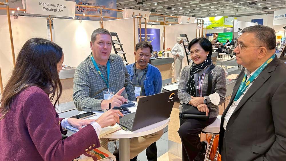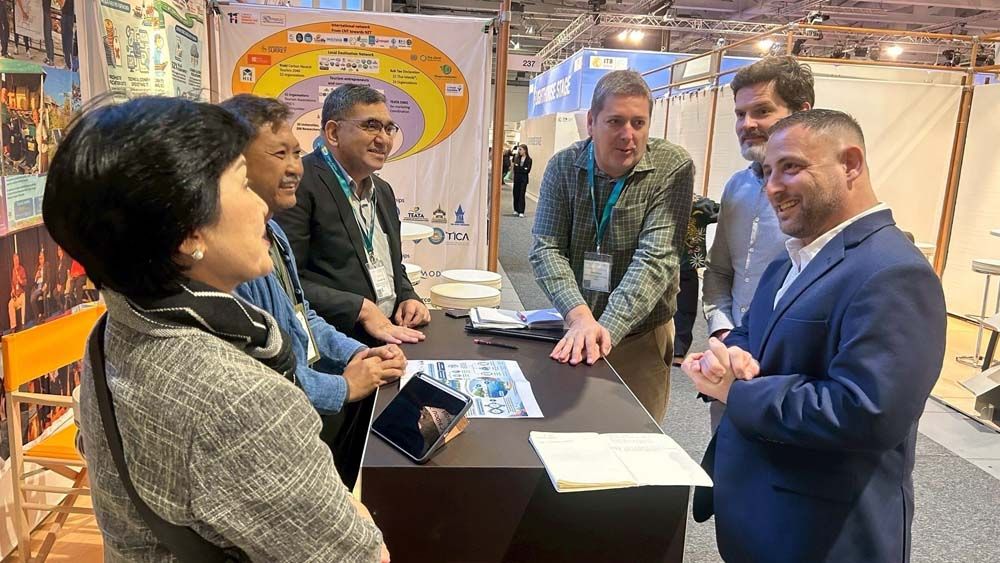 โดย ผศ.สุภาวดี โพธิยะราช ที่ปรึกษา สำนักงานคณะกรรมการส่งเสริมวิทยาศาสตร์ วิจัยและนวัตกรรม สกสว. (ด้านการสร้างความร่วมมือระหว่างหน่วยงาน) และประธานคณะทำงานกลั่นกรอง แผนงานการท่องเที่ยวและเศรษฐกิจสร้างสรรค์ หน่วยบริหารจัดการทุนด้านการเพิ่มความสามารถการแข่งขัน สำนักงานเร่งรัดการวิจัยและนวัตกรรมเพื่อเพิ่มความสามารถการแข่งขันและการพัฒนาพื้นที่ (องค์กรมหาชน), รองศาสตราจารย์ ดร. ธรรมศักดิ์ ยีมิน คณะวิทยาศาสตร์ มหาวิทยาลัยรามคำแหง หัวหน้าโครงการวิจัยการพัฒนาแนวทางแก้ไขปัญหาโดยใช้ธรรมชาติเป็นพื้นฐาน (Nature - based Solutions) เพื่อขับเคลื่อน Net Zero Tourism สนับสนุนโดย บพข. และโครงการ “Policy Advisory and Technical Support to enhance Thailand’s Coastal and Marine Biodiversity Conversation and Promote Synergies with Climate Change and Sustainable Tourism” สนับสนุนโดยองค์กรความร่วมมือระหว่างประเทศของเยอรมัน (GIZ) ประจำประเทศไทย, คุณนิพัทธ์พงษ์ ชวนชื่น อุปนายกสมาคมการค้าการท่องเที่ยวเครือข่ายเชิงนิเวศเอเชีย (AEN) และ Mr. Peter Richards สถาบันการท่องเที่ยวโดยชุมชนในฐานะนักวิจัย โครงการการยกระดับการท่องเที่ยวคาร์บอนสุทธิเป็นศูนย์สู่การปล่อยก๊าซเรือกระจกเป็นศูนย์ในระดับสากล ระยะที่ 2 ได้เข้าร่วมงาน ITB Berlin 2026 ซึ่งจัดขึ้นเป็นปีที่ 60 ระหว่างวันที่ 3-5 มีนาคม 2569 ณ Berlin ExpoCenter City กรุงเบอร์ลิน สหพันธ์สาธารณรัฐเยอรมนี