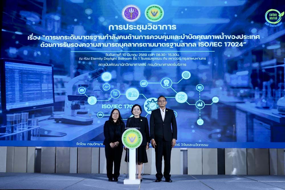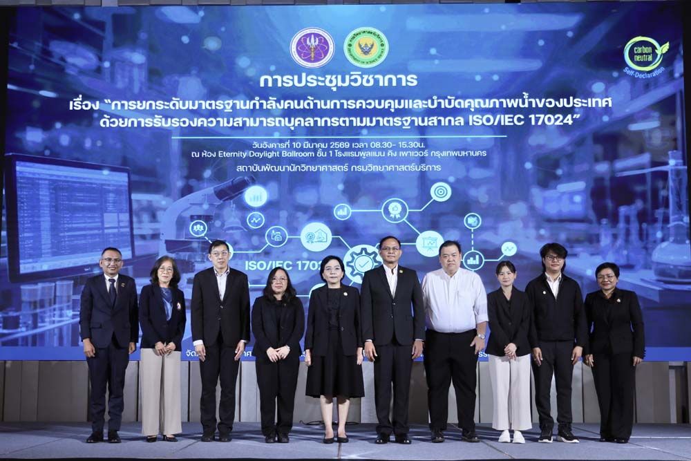 วันที่ 10 มีนาคม 2569 กรมวิทยาศาสตร์บริการ (วศ.) กระทรวงการอุดมศึกษา วิทยาศาสตร์ วิจัยและนวัตกรรม จัดการประชุมวิชาการ เรื่อง “การยกระดับมาตรฐานกำลังคนด้านการควบคุมและบำบัดคุณภาพน้ำของประเทศ ด้วยการรับรองความสามารถบุคลากรตามมาตรฐานสากล ISO/IEC 17024” โดยได้รับเกียรติจาก ดร.พจมาน ท่าจีน รองอธิบดี รักษาราชการแทนอธิบดีกรมวิทยาศาสตร์บริการ เป็นประธานในพิธีเปิดงาน พร้อมปาฐกถาพิเศษในหัวข้อ “ระบบการรับรองความสามารถบุคลากรตาม ISO/IEC 17024 : เครื่องมือยกระดับความเชื่อมั่นบุคลากร” เพื่อเป็นเวทีแลกเปลี่ยนองค์ความรู้และรับฟังความคิดเห็นจากผู้มีส่วนได้ส่วนเสียในการพัฒนาระบบการรับรองความสามารถบุคลากรของประเทศ ณ ห้อง Eternity Daylight Ballroom โรงแรมพูลแมน คิง เพาเวอร์ กรุงเทพมหานคร