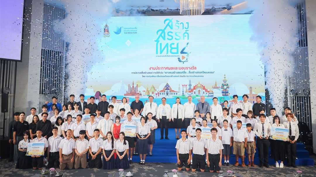 กองทุนพัฒนาสื่อปลอดภัยและสร้างสรรค์ ร่วมกับกระทรวงวัฒนธรรม ประกาศผลและมอบรางวัลการประกวดคลิปสั้นโครงการ “สร้างสรรค์ไทย 4” ภายใต้หัวข้อ “เยาวชนสร้างสรรค์สื่อ สื่อสร้างสรรค์วัฒนธรรม” เพื่อส่งเสริมให้เด็กและเยาวชนผลิตสื่อปลอดภัย ถ่ายทอดซอฟต์พาวเวอร์วัฒนธรรมไทยสู่สังคมทั้งในประเทศและนานาชาติ ชิงรางวัลรวม 9 รางวัล มูลค่า 230,000 บาท โดยมีผลงานส่งเข้าร่วมประกวดรวม 208 ผลงานจากทั่วประเทศ ทั้งนี้รางวัลชนะเลิศรุ่นอายุไม่เกิน 17 ปี ได้แก่ “กาล (สอง) พบ (Fate in Two Worlds)” จากโรงเรียนขนอมพิทยา และรางวัลชนะเลิศรุ่นอายุ 17–25 ปี ได้แก่ “ผู้รับมรดก” จากโรงเรียนทุ่งสง พร้อมโอกาสเผยแพร่ผลงานผ่าน Bloomberg Connects สะท้อนศักยภาพเยาวชนไทยในการใช้สื่อสร้างสรรค์ต่อยอดวัฒนธรรมสู่เวทีสากล