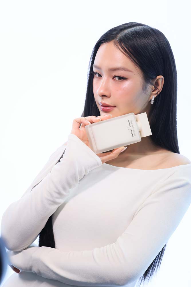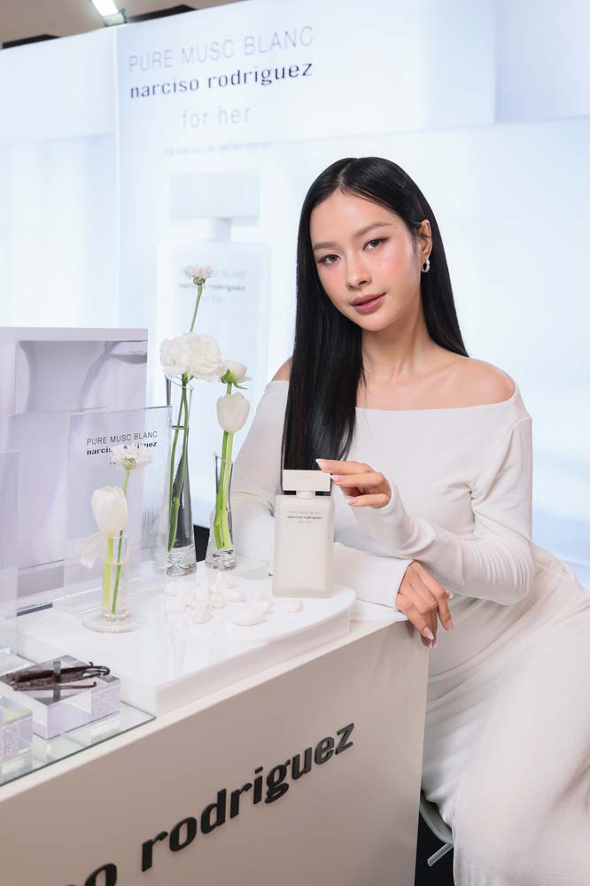ภายในงานอบอวลด้วยกลิ่นหอมบทใหม่จาก narciso rodriguez for her PURE MUSC BLANC eau de parfum intense ผลงานการรังสรรค์ของ Sonia Constant นักปรุงน้ำหอมชื่อดังผู้อยู่เบื้องหลังความหอมระดับไอคอนิกมากมายในคอลเลกชัน for her ด้วยแรงบันดาลใจในการสร้างสรรค์น้ำหอมที่เปี่ยมเสน่ห์ราวกับประกายแสงโอบล้อมผิว มอบความรู้สึกโปร่งสบาย สะอาด และเย้ายวนในเวลาเดียวกัน โดยถ่ายทอดเอกลักษณ์ heart of musc อันเป็นหัวใจของน้ำหอมจาก narciso rodriguez ผ่านโครงสร้างกลิ่นที่เปิดมิติความหอมด้วย Top Note จาก aldehydes และ pink peppercorn ให้ความสดชื่นโปร่งเบาที่บริสุทธิ์ ก่อนจะเผย Heart Note จาก jasmine และ white floral accords ที่มอบออร่าความสว่างไสวและความเป็นผู้หญิงอย่างลุ่มลึก ปิดท้ายด้วย Base Note จากโทน ambery, woody และ vanilla ที่ให้ความอบอุ่นนุ่มลึก สร้างเอกลักษณ์กลิ่นแนว modern floral chypre ที่โดดเด่นและร่วมสมัย นอกจากนี้ยังสามารถเลเยอร์ร่วมกับกลิ่นดั้งเดิมอย่าง for her PURE MUSC eau de parfum ผสานเข้ากับ PURE MUSC BLANC เพื่อสร้างซิกเนเจอร์กลิ่นที่เป็นเอกลักษณ์เฉพาะตัว พร้อมยกระดับความรู้สึกสัมผัสต่อผิว ครีมมี่ สะอาด และเพิ่มความเข้มข้นใหม่ให้ความหอมของ white flower อย่างละเมียดละไมในทุกอณู