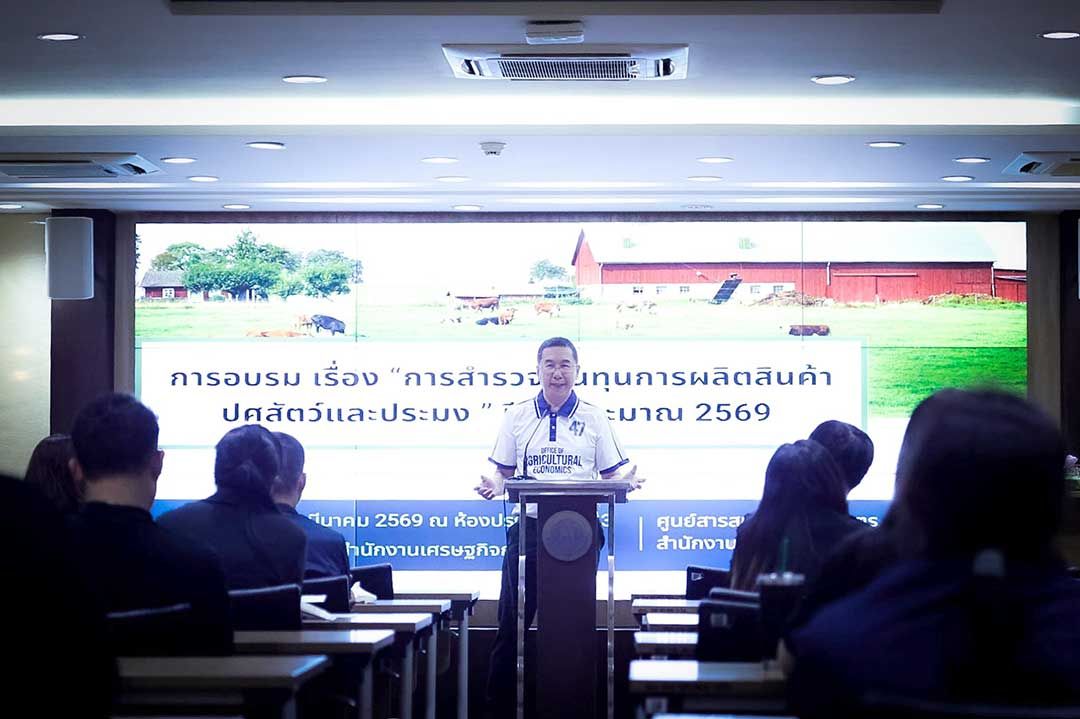 ในการขับเคลื่อนภารกิจเพื่อมุ่งสู่เป้าหมายดังกล่าว สศก. ได้จัดอบรมเชิงปฏิบัติการเรื่อง “การสำรวจต้นทุนการผลิตสินค้าปศุสัตว์และประมง” ระหว่างวันที่ 12 – 13 มีนาคม 2569 เพื่อให้เจ้าหน้าที่ทั้งในส่วนกลางและส่วนภูมิภาคได้รับองค์ความรู้และทักษะในการจัดทำข้อมูลที่ถูกต้องแม่นยำตามหลักวิชาการ โดยมุ่งเน้นความเชี่ยวชาญในการทวนสอบข้อมูลหน้างานให้สะท้อนข้อเท็จจริง เพื่อให้ได้สารสนเทศที่มีคุณภาพส่งต่อถึงมือเกษตรกรและผู้ใช้ประโยชน์ทุกภาคส่วน ซึ่งการอบรมครั้งนี้ มีการให้ความรู้ในหัวข้อที่สำคัญเกี่ยวกับการสำรวจต้นทุนและปริมาณการผลิตสินค้าปศุสัตว์และประมง ปี 2569 ประกอบด้วย ระเบียบวิธีการสำรวจข้อมูลสินค้ากุ้งขาวแวนนาไม ไก่ไข่และไข่ไก่ เกลือทะเล ศูนย์รวบรวมน้ำนมดิบและโคนม รวมถึงการสำรวจราคาปัจจัยการผลิตและปริมาณการผลิตไก่เนื้อและปลากะพง โดยอาศัยศิลปะในการซักถามและจรรยาบรรณในการวิจัยเพื่อให้ได้ข้อมูลที่สะท้อนขีดความสามารถในการแข่งขันของประเทศอย่างแท้จริง