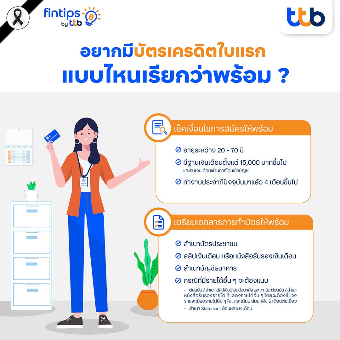 สามารถอ่านบทความฉบับเต็มได้ที่ https://www.ttbbank.com/th/fin-tips/detail/first-credit-card-first-jobber หรือ ติดตามเคล็ดลับการเงินอื่น ๆ จาก “fintips by ttb” เรื่องเงินที่รู้จริงแบบเพื่อนที่รู้ใจ คลิก https://www.ttbbank.com/link/fintips-pr
