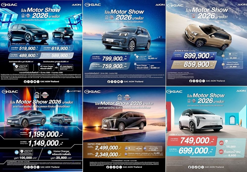 สำหรับลูกค้าที่สนใจสัมผัสประสบการณ์แห่งอนาคตและนวัตกรรมยานยนต์ไฟฟ้าระดับโลกจาก GAC สามารถเข้ามาชมรถคันจริงและร่วมทดลองขับรถยนต์พลังงานใหม่ทุกรุ่นจาก GAC ได้ที่บูธ GAC AION Thailand (บูธ A20) ณ อาคารชาเลนเจอร์ฮอลล์ 1 อิมแพ็ค เมืองทองธานี ตั้งแต่วันที่ 25 มีนาคม - 5 เมษายน 2569 หรือเข้าร่วมแคมเปญ Trade-in และสัมผัสตัวจริงได้ที่โชว์รูม GAC AION ทั่วประเทศ