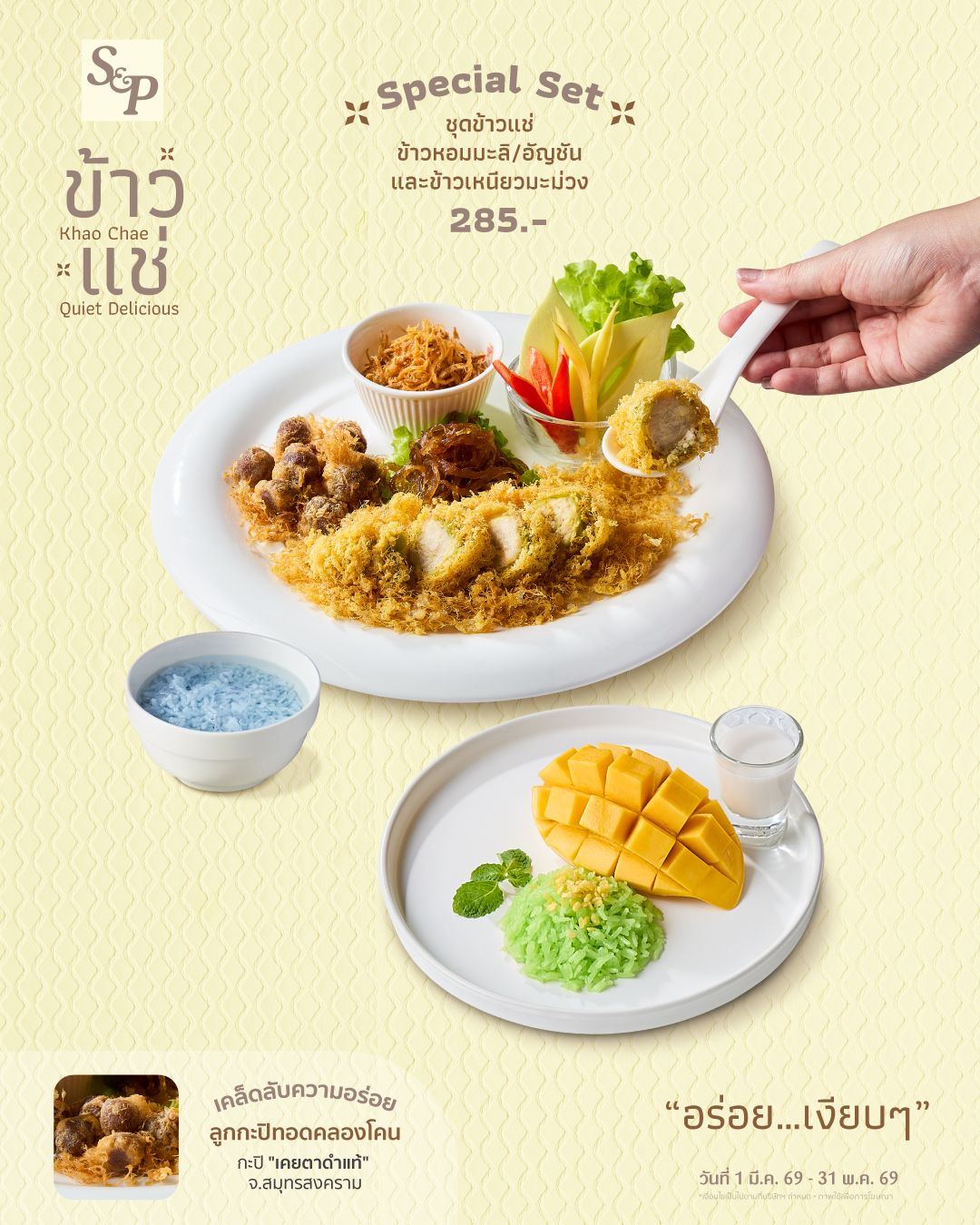 “ข้าวแช่” เอส แอนด์ พี พร้อมวางจำหน่ายแล้ววันนี้ที่ร้าน เอส แอนด์ พี ตั้งแต่วันที่ 1 มีนาคม - 31 พฤษภาคม 2569