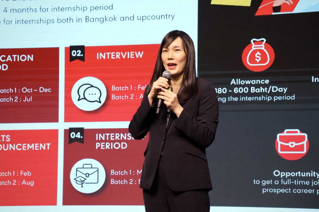 บริษัทให้ความสำคัญกับการเปิดโอกาสให้นักศึกษาได้เข้ามามีส่วนร่วมตั้งแต่ช่วงที่กำลังศึกษาอยู่ โดยรองรับทั้งการฝึกงานและสหกิจศึกษาในหลากหลายสายงานและหลายฟังก์ชัน เพื่อให้นักศึกษาได้ทดลองเรียนรู้และค้นหาความถนัดของตนเองจากสถานการณ์จริง ซึ่งไม่เพียงช่วยเสริมทักษะเชิงวิชาชีพ แต่ยังช่วยสร้างความเข้าใจในบริบทการทำงานขององค์กรขนาดใหญ่ได้อย่างเป็นรูปธรรม