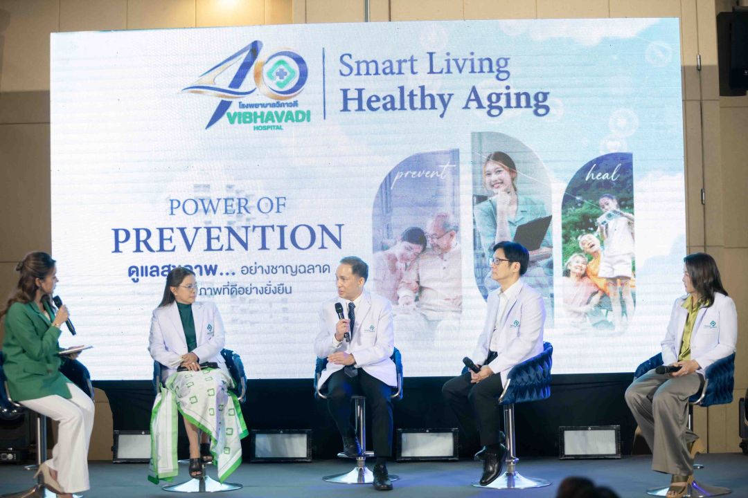 นอกจากนี้แล้ว ภายในงานฉลองครบรอบ 40 ปี ยังได้เปิดเวทีเสวนาให้ความรู้ภายใต้หัวข้อ "Smart Living, Healthy Aging" นำโดยทีมแพทย์ผู้เชียวชาญในแต่ละด้าน ขึ้นพูดคุยประกอบด้วย พญ. กานดา กู้เมือง แพทย์เวชศาสตร์ป้องกัน แขนงเวชศาสตร์วิถีชีวิต นพ.วรงค์ ลาภานันต์ รองผู้อำนวยการโรงพยาบาลวิภาวดี แพทย์อายุรศาสตร์โรคหัวใจ รศ.พิเศษ นพ.เมธี วงศ์ศิริสุวรรณ แพทย์เฉพาะทางด้านประสาทศัลยศาสตร์ และ พญ.ศุภราเชาว์ปรีชา จิตแพทย์ด้าน CBT เด็กและวัยรุ่น ขึ้นเสวนาในมุมมองต่างๆ อาทิ The Power of Prevention: การป้องกันเชิงรุกตาม Life Style (Prevent) เป็นการดูแลสุขภาพตามวิถีชีวิตเพื่อแนะนำการปรับพฤติกรรมให้มีสุขภาพที่ดีขึ้น Specialized Medical Centers: ศูนย์เฉพาะทาง (Treat) เมื่อก้าวสู่การเป็น "ผู้ป่วย" การรักษาต้องอาศัยศูนย์การแพทย์เฉพาะทาง ด้วยเทคโนโลยีที่มีมาตรฐานและทีมแพทย์เฉพาะทางรวมถึงมุมมองเรื่องแพทย์เฉพาะทางด้านประสาทศัลยศาสตร์ (Treat) และMental Wellness & Balance (Heal)