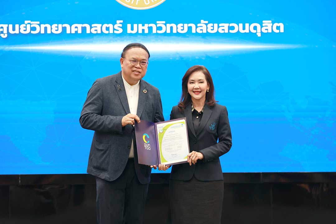 มหาวิทยาลัยสวนดุสิต นับเป็นหนึ่งในองค์กรที่สามารถผ่านการรับรอง ครบทั้ง 3 Scope โดยเฉพาะ Scope 3 ซึ่งในปัจจุบันยังเป็นภาคสมัครใจและมีเพียงไม่กี่องค์กรในประเทศที่สามารถจัดเก็บและวิเคราะห์ข้อมูลคาร์บอนตลอดทั้งห่วงโซ่อุปทาน ตั้งแต่ต้นน้ำถึงปลายน้ำได้อย่างครบถ้วน ความสำเร็จดังกล่าวสะท้อนถึงมาตรฐานการดำเนินงานในระดับสูง และเป็นฐานข้อมูลสำคัญในการวางแผนลดการปล่อยก๊าซเรือนกระจกอย่างมีประสิทธิภาพ เพื่อมุ่งสู่เป้าหมาย Carbon Neutral และ Net Zero ตามแนวทางการพัฒนาที่ยั่งยืนของมหาวิทยาลัยสวนดุสิต การได้รับการรับรองเครื่องหมาย CFO ในครั้งนี้ จึงไม่เพียงเป็นการยืนยันถึงความโปร่งใสและความน่าเชื่อถือด้านการจัดการสิ่งแวดล้อมของมหาวิทยาลัยสวนดุสิตเท่านั้น แต่ยังเป็นการขับเคลื่อนยุทธศาสตร์องค์กรสู่ สังคมคาร์บอนต่ำ อย่างเป็นรูปธรรม และสอดคล้องกับแนวนโยบายการพัฒนามหาวิทยาลัยอย่างยั่งยืน ครอบคลุมทั้งมิติด้านสิ่งแวดล้อม สังคม และธรรมาภิบาล พร้อมร่วมดูแลและส่งต่ออนาคตของโลกที่สมดุลและยั่งยืนสำหรับทุกคน ณ ห้อง Conference Hall สถาบันเพื่อการยุติธรรมแห่งประเทศไทย (องค์การมหาชน)