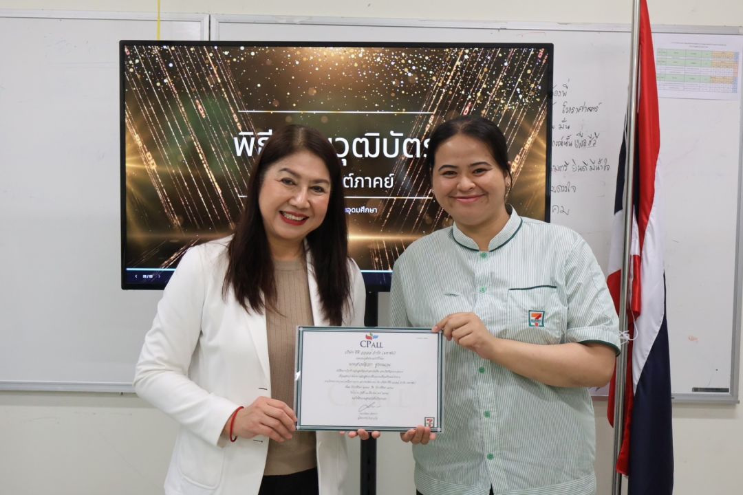 ในโอกาสสำเร็จการฝึกอบรมหลักสูตรเตรียมความพร้อมเข้าทำงาน ภายใต้โครงการความร่วมมือสนับสนุนทุนการศึกษาต่อเนื่องตลอดหลักสูตร ระหว่าง สถาบันรัชต์ภาคย์ กับ บริษัท ซีพี ออลล์ จำกัด (มหาชน) โดยมีนักศึกษาสำเร็จหลักสูตรฝึกอบรมในครั้งนี้ จำนวนทั้งสิ้น 23 คน