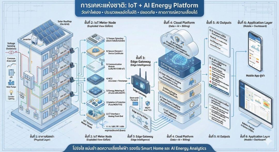 ขณะเดียวกัน ยังมีการนำเทคโนโลยี Digital Twin มาประยุกต์ใช้ในการบริหารจัดการพลังงานแบบอัจฉริยะ เพื่อเพิ่มประสิทธิภาพในการควบคุมและกระจายการใช้ไฟฟ้าภายในโครงการ โดยเฉพาะการบริหารจัดการพลังงานส่วนเกิน (Energy Sharing) ให้สามารถนำไปใช้ประโยชน์ได้อย่างต่อเนื่อง เช่น การรองรับบริการชาร์จรถยนต์ไฟฟ้าสำหรับผู้อยู่อาศัย ซึ่งช่วยแก้ไขข้อจำกัดด้านพื้นที่จอดรถ และยกระดับความสะดวกสบายภายในชุมชน