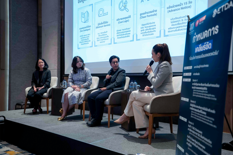 คุณพลอย เจริญสม ผู้ช่วยผู้อำนวยการ ETDA กล่าวว่า จากการรับฟังเสียงสะท้อนของผู้ค้าและผู้ให้บริการในบริการแพลตฟอร์มดิจิทัล พบว่าปัญหาสำคัญคือ ต้นทุนมีความผันผวนและคาดการณ์ได้ยาก จากการเปลี่ยนแปลงค่าธรรมเนียมที่เกิดขึ้นบ่อย รวมถึงต้นทุนแฝงที่ไม่ได้ถูกอธิบายอย่างชัดเจน ส่งผลให้ผู้ประกอบการโดยเฉพาะ SMEs ไม่สามารถวางแผนต้นทุนและกำไรได้อย่างแม่นยำ ซึ่งปัญหาดังกล่าวไม่ได้จำกัดอยู่แค่ตัวเลขค่าธรรมเนียมเท่านั้น แต่คือการที่ผู้ใช้งานไม่เห็นภาพรวมต้นทุนทั้งหมด และไม่เข้าใจเงื่อนไขอย่างแท้จริง พร้อมเผยว่า ในภาคสนามยังพบข้อจำกัดที่น่าสนใจ เช่น การเรียกเก็บค่าโฆษณาโดยไม่แจ้งล่วงหน้า การหักค่าธรรมเนียมที่ไม่ชัดเจน และการเปลี่ยนแปลงเงื่อนไขโดยที่ผู้ใช้ตั้งตัวไม่ทัน ซึ่งทั้งหมดนี้กระทบทั้งผู้ขายและผู้บริโภคในทางอ้อม
