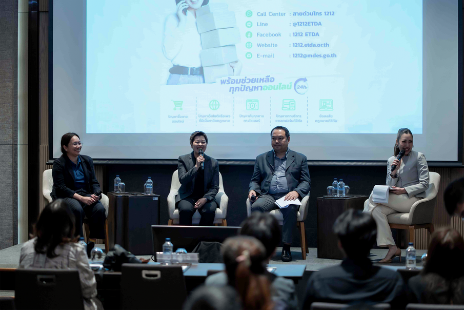 นอกจากนี้ ภายในงานยังเปิดเวทีแลกเปลี่ยนในหลากหลายมิติที่เกี่ยวข้อง จากหลากหลายหน่วยงาน อาทิ สภาองค์กรของผู้บริโภค (TCC), สำนักงานคณะกรรมการคุ้มครองผู้บริโภค (สคบ.), ศูนย์ช่วยเหลือและจัดการปัญหาออนไลน์ (1212 ETDA) และ ทีมนโยบายและเกณฑ์การกำกับดูแล ของ ETDA ที่มาร่วมถ่ายทอดมุมมองและประสบการณ์จริงเกี่ยวกับค่าธรรมเนียมแพลตฟอร์ม เพื่อเปิดภาพให้เห็นทั้งมุมผู้กำกับดูแล ผู้ประกอบการ และผู้บริโภคอย่างรอบด้าน โดยเนื้อหาครอบคลุมตั้งแต่การสะท้อนผลกระทบจริงจากผู้ใช้งาน การวิเคราะห์ประเด็นเชิงนโยบาย ไปจนถึงการอธิบายแนวทางและตัวอย่างการกำหนดค่าธรรมเนียมที่เหมาะสม เพื่อให้สามารถนำไปปรับใช้ได้จริงในทางปฏิบัติ และขยายผลสู่มาตรฐานในวงกว้าง