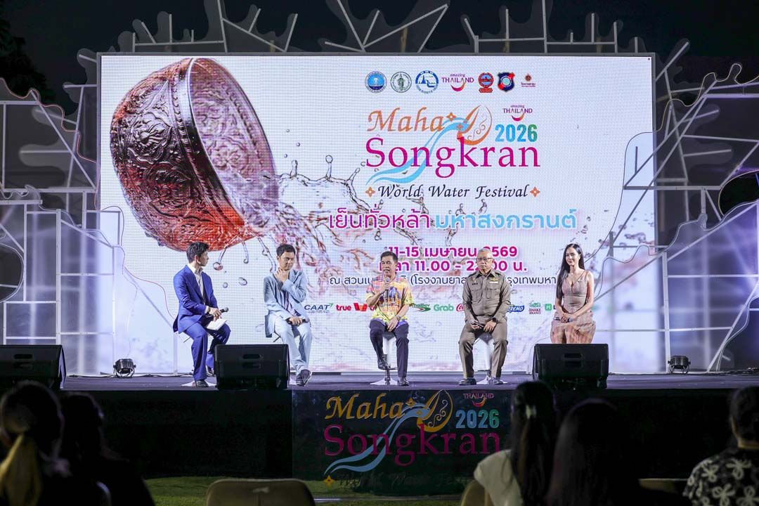 กระทรวงการท่องเที่ยวและกีฬา โดย การท่องเที่ยวแห่งประเทศไทย (ททท.) แถลงข่าวเตรียมตอกย้ำภาพลักษณ์ “เทศกาลสงกรานต์ระดับโลก” กับการจัดงาน “Maha Songkran World Water Festival 2026” ระหว่างวันที่ 11-15 เมษายน 2569 ณ บริเวณสวนเบญจกิติ (โรงงานยาสูบเดิม) กรุงเทพมหานคร และงาน “Saneh Art by Songkran Festival 2026” ที่จะจัดขึ้นในวันที่ 11-30 เมษายน 2569 ณ สวนลุมพินี (ลานบันเทิง) กรุงเทพมหานคร โดยมีนายณัฐ ครุฑสูตร รองผู้ว่าการด้านสินค้าและธุรกิจท่องเที่ยว ททท. ,พลตำรวจตรีดนุ กล่ำสุ่ม ผู้บังคับการตำรวจท่องเที่ยว 1, นางสาวรุจิรา อารินทร์ รองผู้อำนวยการสำนักวัฒนธรรม กีฬา และการท่องเที่ยว กรุงเทพมหานคร ,นางสงกรานต์ประจำปี 2569 “นางรากษสเทวี” โอปอล-สุชาตา ช่วงศรี Miss World 2025 และทูตการท่องเที่ยวแห่งประเทศไทย พร้อมด้วยศิลปิน และ DJ มาร่วมแถลงข่าวฯ ณ ลานอัฒจันทร์กลางแจ้ง Amphitheater สวนเบญจกิติ