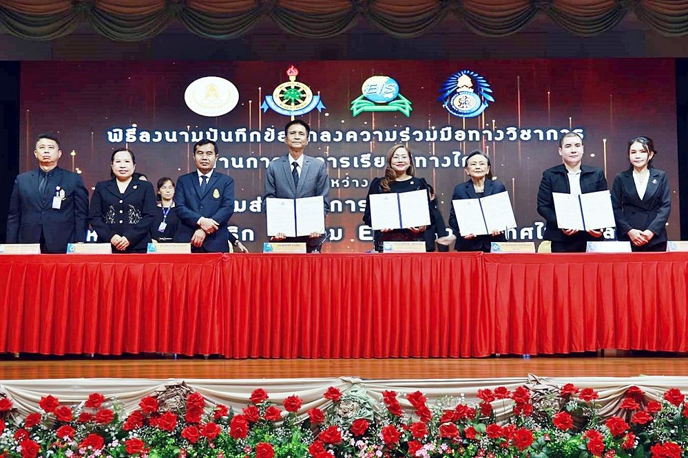 ในการ"ร่วมพิธีลงนามบันทึกข้อตกลงความร่วมมือ"ทางวิชาการ ด้านการเรียนรู้ทางไกล เป็นความร่วมมือกันระหว่าง ดร.เกศทิพย์ ศุภวานิช อธิบดีกรมส่งเสริมการเรียนรู้ / นายคมกฤช อภิชัยสรพันธุ์ ผู้อำนวยสถาบันการศึกษาทางไกล / รศ.ดร.พรพรรณ จันทโรนานนท์ อธิการบดีมหาวิทยาลัยเกริก / ดร.ธัญญ์พิชชา อติวัณณ์วงษ์ รองอธิการบดีฝ่ายสื่อสารการตลาดประเทศไทย / ดร.สุรพงศ์ งามสม นายกสมาคม EIS แห่งประเทศไทย ดร.เชี่ยวชาญ ดวงใจดี อุปนายกสมาคม EIS แห่งประเทศไทย / ดร.สันติ พิมพ์ใจใส นายกสมาคมส่งเสริมการศึกษาทางไกล (ประเทศไทย) ลงนามเซ็นสัญญา MOU ร่วมกับกรมส่งเสริมการเรียนรู้...พัฒนาการศึกษาสู่มาตรฐานสากลยิ่งขึ้น
