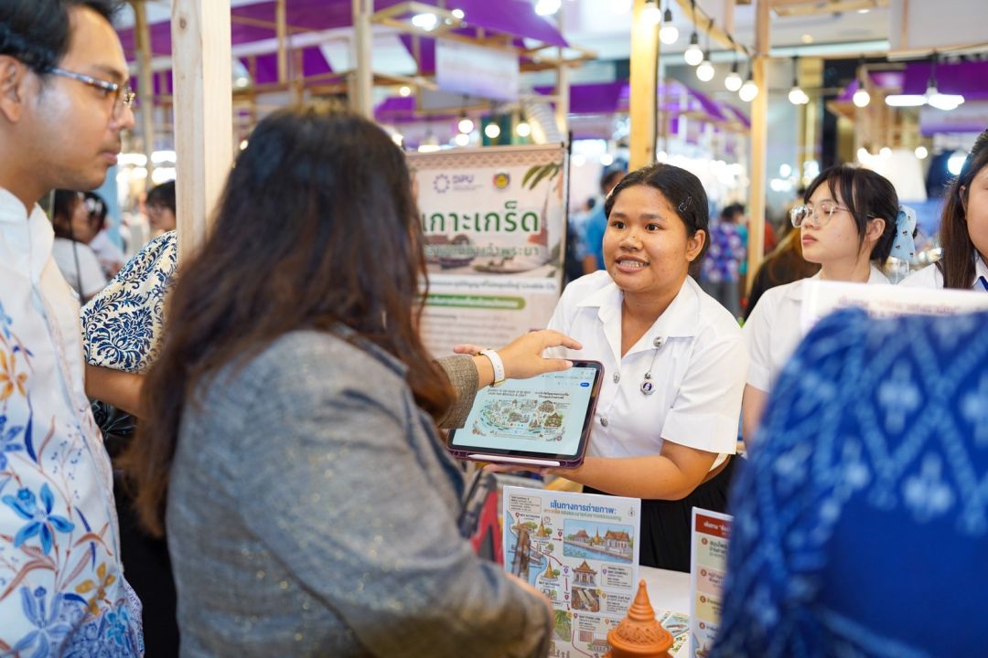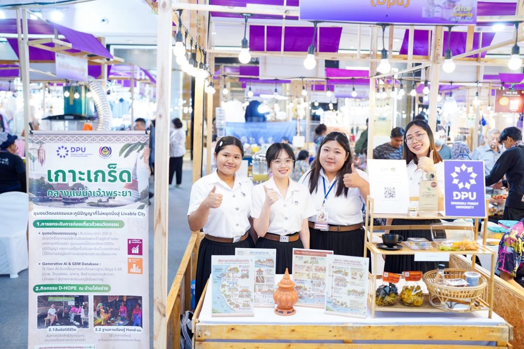 หนึ่งในไฮไลต์สำคัญของงานคือ "โครงการ Go Green Go Local เกาะเกร็ด จังหวัดนนทบุรี" ผลงานสร้างสรรค์ของกลุ่มนักศึกษา DPU จากคณะศิลปศาสตร์ ชั้นปีที่ 2 ประกอบด้วย ศศิธร อาศัยสงฆ์, เข็มอัปสร ใหม่วงษ์, พิมพ์ชนก เมฆวัน, ณิชา ธนาวินิจเจริญ จากสาขาภาษาจีนธุรกิจ และ เสาวลักษณ์ แซ่โจว จากสาขาภาษาอังกฤษธุรกิจ ซึ่งเป็นการบูรณาการรายวิชาความเป็นผู้ประกอบการดิจิทัลเพื่อความยั่งยืน ภายใต้หลักสูตร DPU Core ที่มุ่งสร้างทักษะแห่งอนาคตยุค 4.0 ด้วยการผสานความคิดสร้างสรรค์ Green Skills และจิตวิญญาณผู้ประกอบการ ให้เกิดการเรียนรู้ที่ทันสมัยและนำไปลงมือทำได้จริง เพื่อยกระดับการท่องเที่ยวเชิงวัฒนธรรมด้วยระบบ Generative AI ที่ขับเคลื่อนการเล่าเรื่องผ่านฐานข้อมูลอัจฉริยะ 5 มิติ ทั้งภาพ, วัฒนธรรม, อาหาร, สิ่งอำนวยความสะดวก และสถานที่ท่องเที่ยวที่น่าสนใจ เพื่อสร้างประสบการณ์ใหม่ให้แก่นักท่องเที่ยวกลุ่มผู้ใช้ภาษาจีนและภาษาอังกฤษที่ต้องการสัมผัสวิถีชุมชน