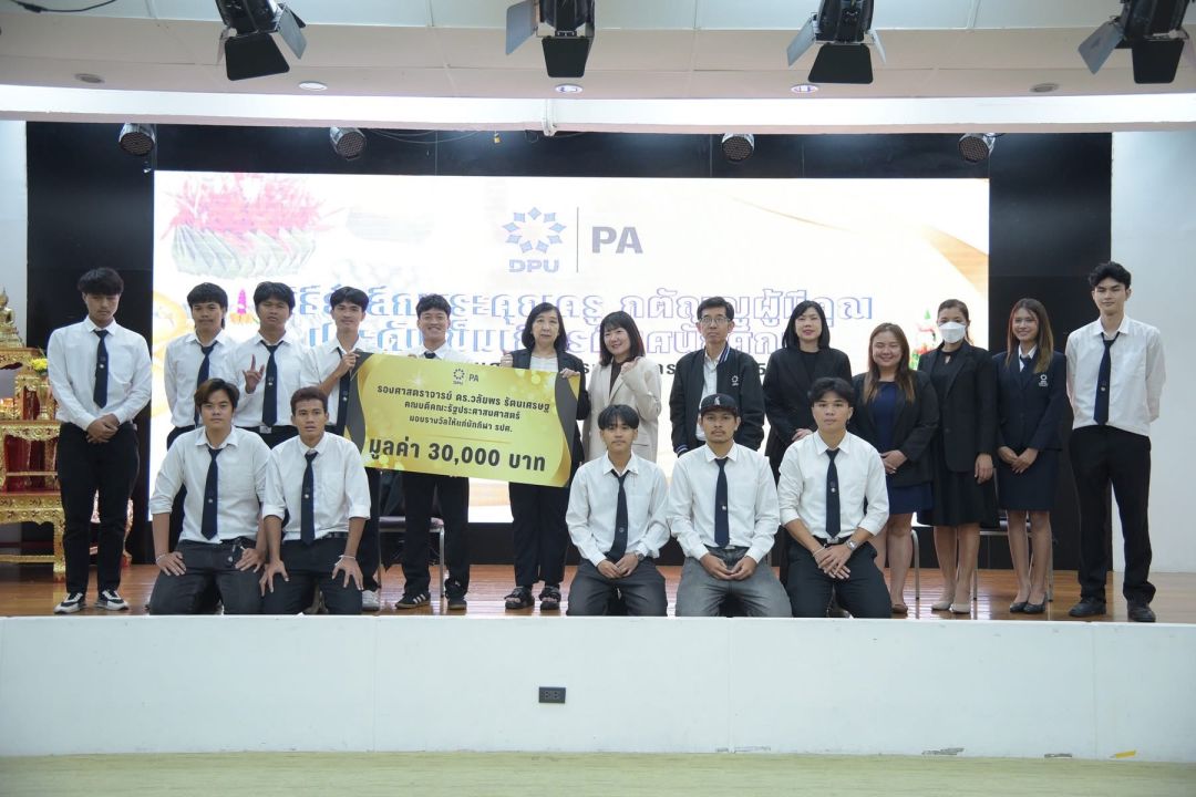 คณะรัฐประศาสนศาสตร์ มหาวิทยาลัยธุรกิจบัณฑิตย์ (DPU) จัดกิจกรรม “พิธีรำลึกพระคุณครู และพิธีประดับเข็มเกียรติยศนักศึกษา ประจำปีการศึกษา 2568” เมื่อวันที่ 21 เมษายน 2569 ที่ผ่านมา ณ อาคารสนม สุทธิพิทักษ์ อนุสรณ์ DPU โดยมีนักศึกษาเข้าร่วมจำนวน 110 คน ภายใต้แนวคิดการมอบ “พานต้นไม้” ให้กับคณาจารย์ ซึ่งงานนี้จัดต่อเนื่องเป็นปีที่ 4 เพื่อส่งเสริมแนวคิดการอนุรักษ์สิ่งแวดล้อมและสนับสนุนเป้าหมายการพัฒนาอย่างยั่งยืน (SDGs) ควบคู่กับการปลูกฝังคุณค่าความกตัญญู ความภาคภูมิใจ และความผูกพันในความเป็นนักศึกษารัฐประศาสนศาสตร์