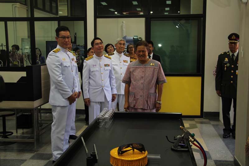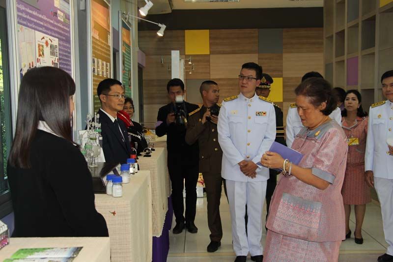 ในการนี้ ผู้ช่วยศาสตราจารย์ ดร.สิทธิชัย วิโรจนุปถัมภ์ หัวหน้าภาควิชาเคมี ได้ทูลเกล้าทูลกระหม่อมถวายของที่ระลึกจากห้องปฏิบัติการเป่าแก้ว ภาควิชาเคมี นางสาวปนัดดา อยู่วิทยา และนางสาวนุชรี อยู่วิทยา ทูลเกล้าทูลกระหม่อมถวายเงิน โดยเสด็จพระราชกุศลตามพระราชอัธยาศัย โดยมีศาสตราจารย์เกียรติคุณ นายแพทย์อาวุธ ศรีศุกรี รักษาการแทนอธิการบดีมหาวิทยาลัยเชียงใหม่ กราบบังคมทูลสำนึกในพระมหากรุณาธิคุณ และศาสตราจารย์ ดร.ธรณินทร์ ไชยเรืองศรี คณบดีคณะวิทยาศาสตร์ กราบบังคมทูลรายงานความเป็นมาของการก่อสร้างอาคารเฉลียวอยู่วิทยานุสรณ์