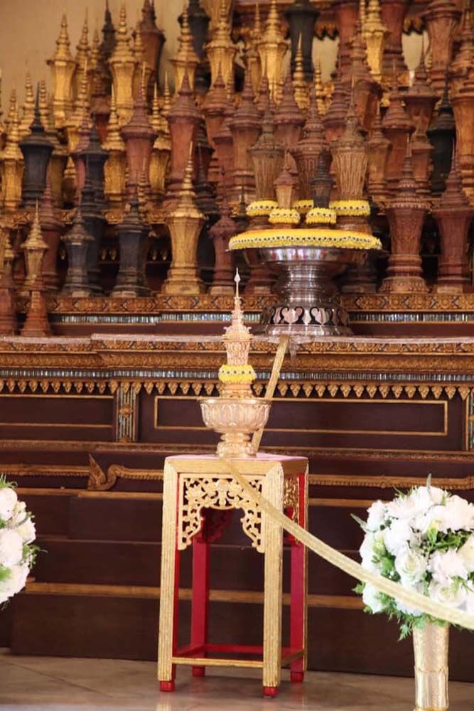 อนึ่ง สมเด็จพระกนิษฐาธิราชเจ้า กรมสมเด็จพระเทพรัตนราชสุดาฯ สยามบรมราชกุมารี ทรงพระกรุณาโปรดเกล้าฯ ให้เชิญพุ่มดอกไม้ของส่วนพระองค์มาถวายสักการะพระรูป พระเจ้าวรวงศ์เธอ กรมหลวงชินวรสิริวัฒน์ สมเด็จพระสังฆราชเจ้า และพระรูป สมเด็จพระสังฆราชเจ้า กรมหลวงชินวราลงกรณ ณ ซุ้มคูหาพระเจดีย์ เนื่องในการถวายฉัตรตาดเหลือง ๕ ชั้นกางกั้นพระรูป และสมเด็จพระเจ้าลูกเธอ เจ้าฟ้าสิริวัณณวรี นารีรัตนราชกัญญา ทรงพระกรุณาโปรดให้เชิญพุ่มบัวมาถวายเจ้าประคุณ สมเด็จพระมหาวีรวงศ์ เนื่องในการสมโภชสุพรรณบัฏด้วย