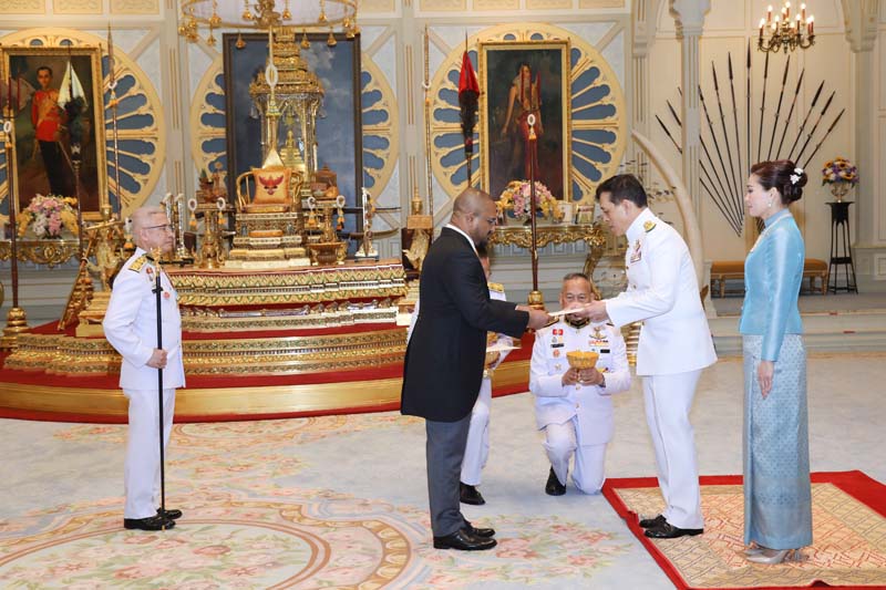 นายมุฮัมมัด จินาห์ (Mr. Mohamed Jinah) ซึ่งมีถิ่นพำนักอยู่ที่กรุงเทพมหานคร เฝ้าทูลละอองธุลีพระบาท ถวายอักษรสาส์นตราตั้ง เป็นเอกอัครราชทูตวิสามัญผู้มีอำนาจเต็มแห่งสาธารณรัฐมัลดีฟส์ประจำประเทศไทย