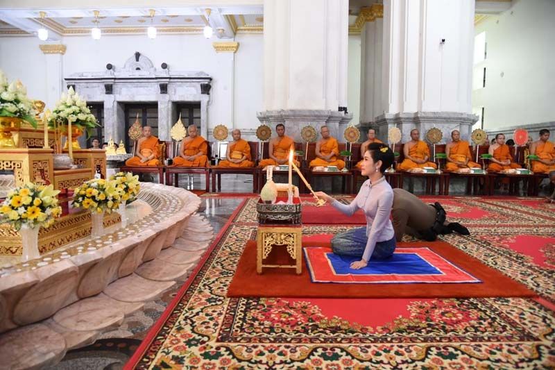 จากนั้นวางพวงมาลัย จุดธูปเทียนเครื่องนมัสการบูชาหลวงพ่อพุทธโสธร และหลวงพ่อเกสร พระประธานพระอุโบสถ กราบ นั่งเก้าอี้ รับศีล เจ้าคณะจังหวัดฉะเชิงเทรา ให้ศีล เจ้าคุณพระสินีนาฏ พิลาสกัลยาณี กล่าวคำถวายสังฆทาน ประเคนเครื่องสังฆทานพระราชทาน ถวายแด่เจ้าคณะจังหวัดฯ นั่งเก้าอี้ที่จัดไว้ ณ ที่เดิม กรวดน้ำ พระสงฆ์อนุโมทนา ถวายอดิเรก เจ้าคุณพระสินีนาฏ พิลาสกัลยาณี กราบที่หน้าเครื่องนมัสการ กราบลาพระสงฆ์ ออกจากพระอุโบสถไปยังพิพิธภัณฑ์เมืองฉะเชิงเทรา