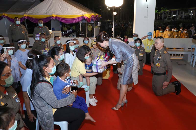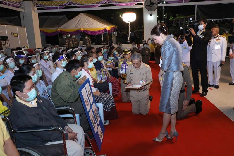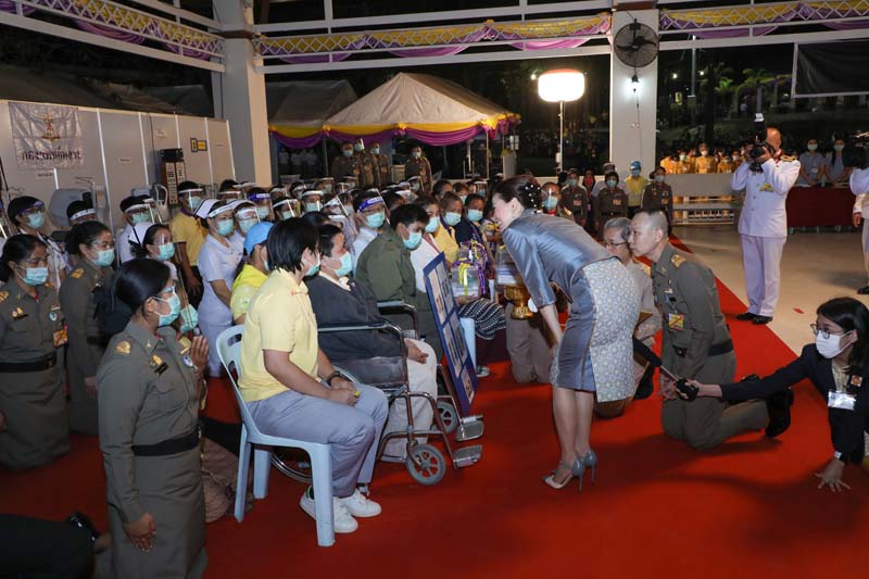 ในการนี้ ทรงรับผู้ป่วยจำนวน 6 ราย ไว้ในพระบรมราชานุเคราะห์ ประกอบด้วย ผู้ป่วยโรคมะเร็งเม็ดเลือดขาว 2 ราย โรคเนื้องอกในสมอง กระดูกข้อสะโพกซ้ายหัก ผู้ป่วยงูเห่ากัดตอนอายุ 2 ขวบ ส่งผลให้เป็นพังผืดที่แขนซ้ายกระดิกนิ้วมือไม่ได้ ทำให้แขนงอใช้การไม่ได้ และโรคทางพันธุกรรม ทำให้เซลล์ในร่างกายเจริญผิดปกติ มีอาการชักเกร็งตลอดเวลา พร้อมกันนี้ทรงรับฟังการถวายรายงานมาตราการการป้องกันและรักษาโรคโควิด-19