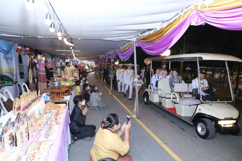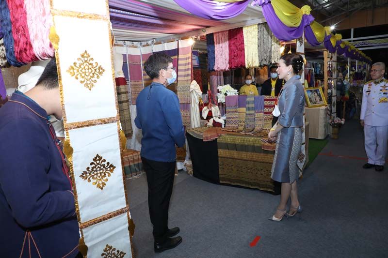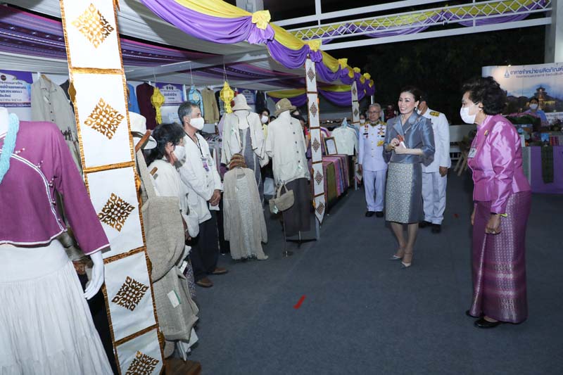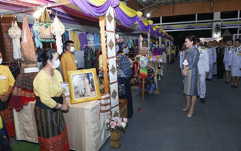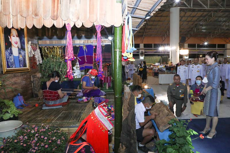 ในเวลาต่อมา ทรงเยี่ยมชมและทอดพระเนตรโครงการจัดแสดงและจำหน่ายภูมิปัญญา OTOP เชิงบูรณาการ "สืบสาน รักษา และต่อยอด" โดยกรมพัฒนาชุมชน กระทรวงมหาดไทย ได้มีการสาธิตการทอกี่เอวผ้าปักชนเผ่าม้ง จ.เชียงใหม่ อันเป็นการทอผ้าของชนเผ่าชาวกะเหรี่ยง เป็นการทอแบบวิถีดั้งเดิม เรียกว่าทอแบบกี่เอว หรือการทอแบบห้างหลัง โดยใช้อุปกรณ์เครื่องทอขนาดเล็กเรียกว่ากี่เอว การสาธิตเพ้นท์ร่ม กลุ่มร่มหลวงลุงวงศ์ จ.เชียงใหม่ ซึ่งร่มเป็นผลิตภัณฑ์ภูมิปัญญาของชาวเชียงใหม่ตั้งแต่สมัยโบราณและสืบทอดกันมายาวนานจนถึงปัจจุบันนี้ เมื่อก่อนนี้ภูมิปัญญาชาวบ้านทำแต่ร่มกระดาษสา แต่ต่อมาได้มีการวิวัฒนาการเปลี่ยนมาเป็นร่มผ้าหลายๆ รูปแบบ