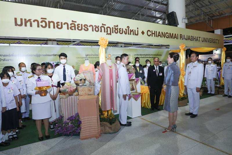 ต่อจากนั้น ทรงเยี่ยมชมนิทรรศการผลงานจากนักศึกษามหาวิทยาลัยราชภัฏเชียงใหม่ และมหาวิทยาลัยราชภัฏเพชรบูรณ์ ที่ได้น้อมนำพระบรมราโชบายมาใช้ในการดำเนินงานเพื่อการพัฒนาท้องถิ่น โดยการจัดการเรียนการสอนและงานวิจัยเข้ากับการพัฒนาท้องถิ่นเพื่อแก้ไขปัญหาความยากจน และรักษาความเป็นอัตลักษณ์ของภูมิปัญญาท้องถิ่นให้คงอยู่จากรุ่นสู่รุ่น