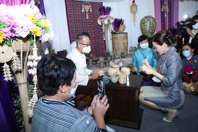 โอกาสนี้ทรงอักษรพระนาม "สุทิดา" ลงบนแก้วกาแฟ ศิลาดล เครื่องเคลือบดินเผาเขียวหยกมรดกแห่งล้านนาอันเป็นหนึ่งในผลิตภัณฑ์ OTOP เพื่อเป็นขวัญและกำลังใจ ให้ช่วยกันรักษาสืบสานศิลปหัตถกรรมภูมิปัญญาไทย