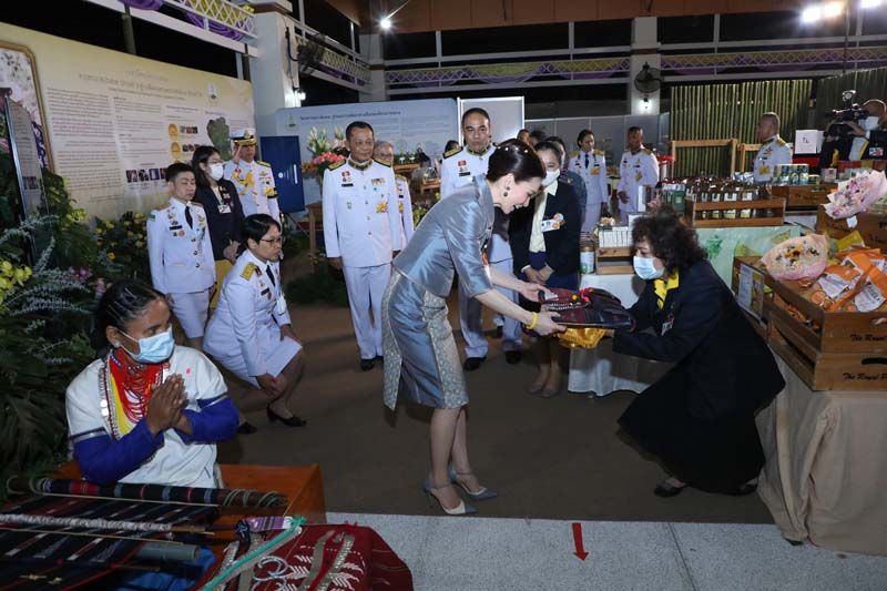 ต่อมาทอดพระเนตรผลิตภัณฑ์จากโครงการตามพระราชดำริ จ.เชียงใหม่ จากมูลนิธิส่งเสริมศิลปาชีพ ในสมเด็จพระนางเจ้าฯ พระบรมราชินีนาถ ที่ทรงมีพระราชดำริเริ่มโครงการ เพื่อสร้างอาชีพให้แก่ราษฎรสามารถเลี้ยงชีพได้อย่างยั่งยืนพร้อมไปกับการอนุรักษ์ศิลปวัฒนธรรมไทยและทรัพยากรธรรมชาติ อาทิ งานแกะสลักไม้ ผลิตภัณฑ์เซรามิค การสาธิตปักลูกเดือยบนเสื้ออันเป็นอัตลักษณ์ของชาวกระเหรี่ยง งานทอกี่กระตุก ผ้าปักชาวเขาเผาต่างๆ กระเป๋า