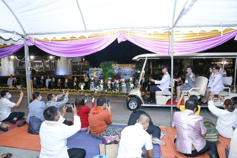 โอกาสนี้ ทรงเยี่ยมหน่วยแพทย์เคลื่อนที่ ที่พระบาทสมเด็จพระเจ้าอยู่หัว ทรงพระกรุณาโปรดเกล้าโปรดกระหม่อมให้กองแพทย์หลวง ร่วมกับกรมการแพทย์ทหารบก สาธารณสุขจังหวัดเชียงใหม่ และโรงพยาบาลในพื้นที่ มาออกหน่วยตรวจรักษาโรค ให้บริการทางการแพทย์แก่ประชาชนในพื้น จ.เชียงใหม่ และผู้ปกครองบัณฑิต ได้เข้าถึงบริการทางการแพทย์อย่างรวดเร็ว โดยในวันนี้ได้นำเครื่องมือพิเศษที่เป็นเครื่องมือเฉพาะทาง ซึ่งได้รับพระราชทานจากพระบาทสมเด็จพระเจ้าอยู่หัว มาใช้ในการตรวจรักษาประชาชน อาทิ เครื่องตรวจจอประสาทตา เครื่องตรวจการทำงานของหัวใจ เครื่องอัลตราซาวด์ รถตรวจโรคติดเชื้อชีวนิรภัย เพื่อใช้เป็นห้องปฏิบัติการเคลื่อนที่ในการเก็บตัวอย่าง โรคติดเชื้อไวรัสโควิด-19 ได้อย่างสะดวกและรวดเร็ว โดยเครื่องมือดังกล่าวสามารถตรวจพบความผิดปกติได้อย่างรวดเร็ว หน่วยทันตกรรมเคลื่อนที่ โดยมีแพทย์เฉพาะทางมาให้บริการตรวจรักษาประชาชน อาทิ อายุรแพทย์โรคหัวใจ อายุรแพทย์โรคไต จักษุแพทย์ แพทย์ผู้เชี่ยวชาญด้านออร์โธปิดิกส์ กระดูกและข้อ