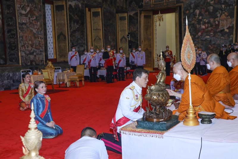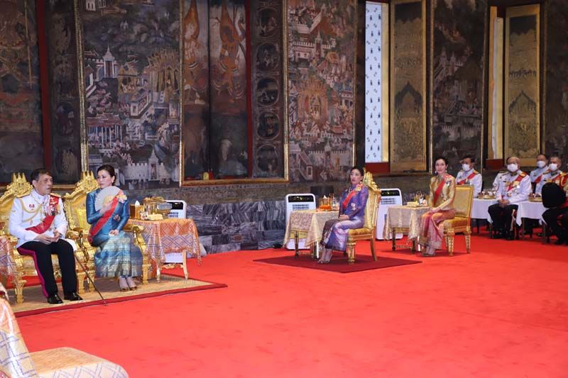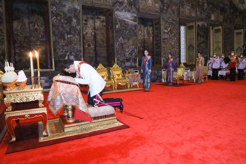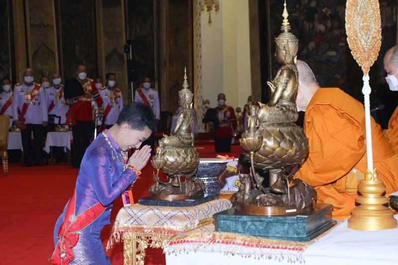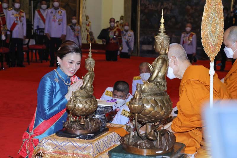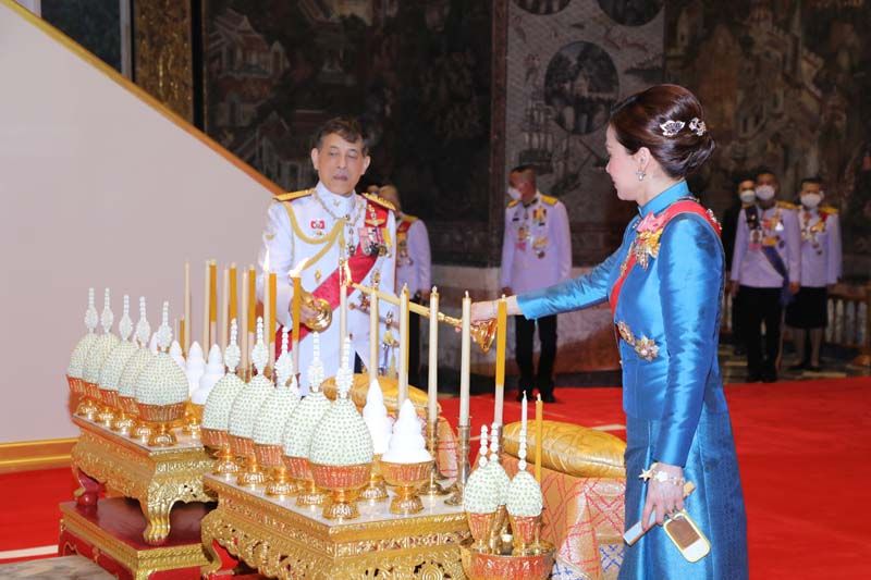 พระบาทสมเด็จพระเจ้าอยู่หัว ทรงจุดธูปเทียนเครื่องนมัสการบูชาพระพุทธศรีศากยมุนี และภาพพระสุนทรีวาณี แล้วทรงจุดธูปเทียนเครื่องทองน้อย ถวายราชสักการะพระบรมราสรีรางคาร รัชกาลที่ 8 ทรงกราบ สมเด็จพระนางเจ้าฯ พระบรมราชินี ทรงจุดธูปเทียนเครื่องนมัสการบูชาพระพุทธศรีศากยมุนี และภาพพระสุนทรีวาณี แล้วทรงจุดธูปเทียนเครื่องทองน้อย ถวายราชสักการะพระบรมราสรีรางคาร รัชกาลที่ 8 ทรงกราบ สมเด็จพระเจ้าลูกเธอ เจ้าฟ้าพัชรกิติยาภา นเรนทิราเทพยวดี กรมหลวงราชสาริณีสิริพัชร มหาวัชรราชธิดา ทรงจุดธูปเทียนเครื่องนมัสการท้ายที่นั่งบูชาพระพุทธศรีศากยมุนี และภาพพระสุนทรีวาณี ทรงกราบ เจ้าคุณพระสินีนาฏ พิลาสกัลยาณี จุดธูปเทียนเครื่องนมัสการท้ายที่นั่งบูชาพระพุทธศรีศากยมุนี และภาพพระสุนทรีวาณี กราบ