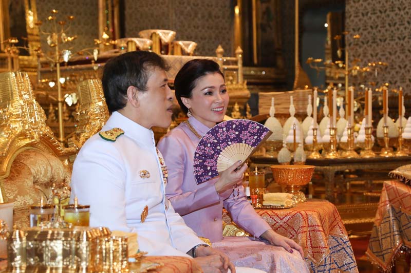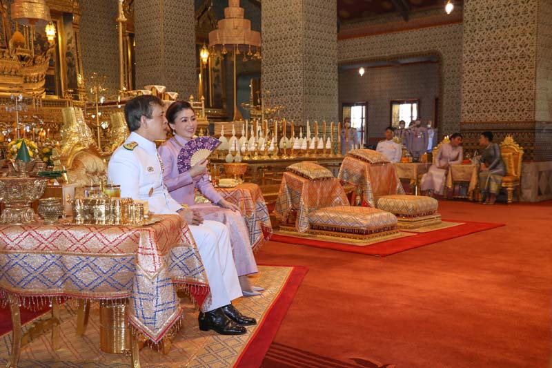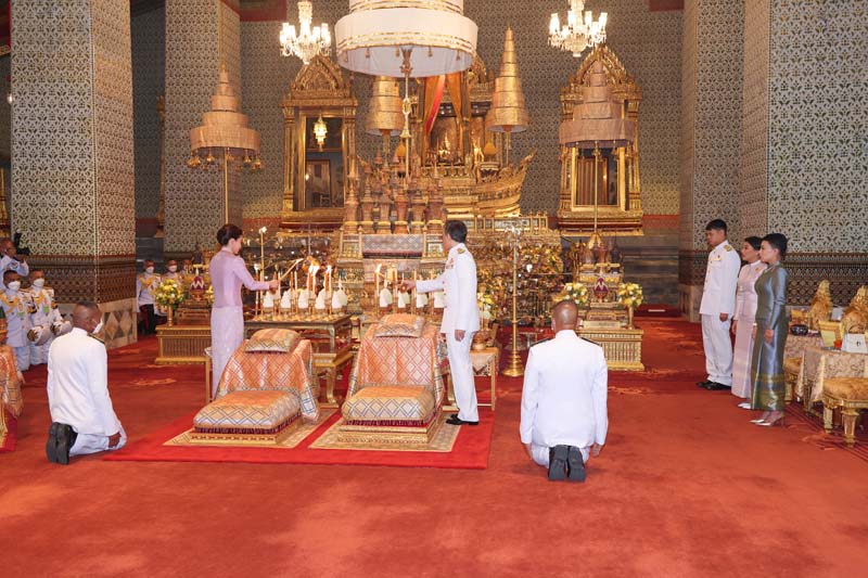 จากนั้น เสด็จพระราชดำเนินไปทรงกราบพระพุทธรูปประจำพระชนมวาร รัชกาลที่ 1 - รัชกาลที่ 9 ที่หน้าพระที่นั่งบุษบกมาลา ทรงกราบพระบรมอัฐิ และพระอัฐิที่หน้าพระแท่นพระนพปฎลมหาเศวตฉัตร ทรงรับการถวายความเคารพของผู้มาเฝ้าทูลละอองธุลีพระบาท แล้วเสด็จออกจากพระที่นั่งอมรินทรวินิจฉัย ประทับรถยนต์พระที่นั่ง เสด็จพระราชดำเนินกลับ