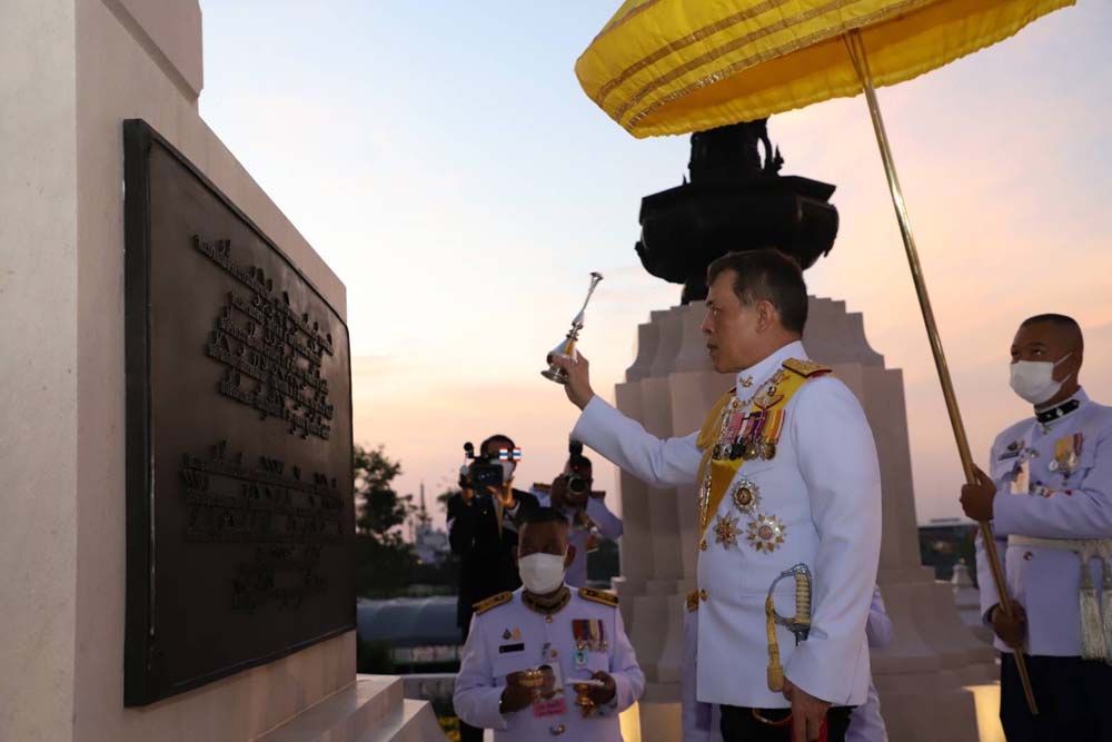 จากนั้น พระบาทสมเด็จพระเจ้าอยู่หัว เสด็จขึ้นลานพระบรมราชานุสาวรีย์พระบาทสมเด็จพระบรมชนกาธิเบศร มหาภูมิพลอดุลยเดชมหาราช บรมนาถบพิตร ทรงพระสุหร่าย ทรงเจิมแผ่นคำจารึกที่ฐานพระบรมราชานุสาวรีย์ฯ พระบาทสมเด็จพระเจ้าอยู่หัว ทรงวางพุ่มดอกไม้ ทรงวางพวงมาลัย ทรงจุดธูปเทียนเครื่องทองน้อยถวายราชสักการะ ทรงกราบ สมเด็จพระนางเจ้าฯ พระบรมราชินี ทรงวางพุ่มดอกไม้ของสมเด็จพระนางเจ้าสิริกิติ์ พระบรมราชินีนาถ พระบรมราชชนนีพันปีหลวง และทรงวางพุ่มดอกไม้ส่วนพระองค์ ทรงวางพวงมาลัย ทรงจุดธูปเทียนเครื่องทองน้อยถวายราชสักการะ ทรงกราบ สมเด็จพระเจ้าลูกเธอ เจ้าฟ้าพัชรกิติยาภา นเรนทิราเทพยวดี กรมหลวงราชสาริณีสิริพัชร มหาวัชรราชธิดา และสมเด็จพระเจ้าลูกเธอ เจ้าฟ้าสิริวัณณวรี นารีรัตนราชกัญญา ทรงวางพุ่มดอกไม้ ทรงวางพวงมาลัย ทรงจุดธูปเทียนเครื่องทองน้อยถวายราชสักการะ ทรงกราบ