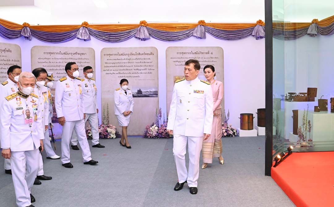 ต่อมาเสด็จเข้าอาคาร 1 ทอดพระเนตรนิทรรศการเฉลิมพระเกียรติพระบาทสมเด็จพระจุลจอมเกล้าเจ้าอยู่หัว ที่มีเนื้อหาเกี่ยวกับประวัติความเป็นมาและพัฒนาการของการศุลกากรในประเทศไทย ตั้งแต่สมัยกรุงสุโขทัย ที่มีการกล่าวถึง "จกอบ" (อ่านว่า จะ-กอบ) หรือการจัดเก็บภาษีจากสัตว์และสิ่งของที่นำเข้ามาจำหน่ายในประเทศ สมัยกรุงศรีอยุธยา มีการตั้ง "พระคลังสินค้า" เมื่อ พุทธศักราช 2054 เป็นผู้ทำการค้าขายกับต่างประเทศและกำหนดประเภทสินค้าที่จะเข้ามาซื้อขาย ต่อมาในสมัยกรุงรัตนโกสินทร์ พระบาทสมเด็จพระนั่งเกล้าเจ้าอยู่หัว พระมหาเจษฎาราชเจ้า ทรงแก้ไขวิธีเก็บภาษีอากรเป็น "ระบบเจ้าภาษีนายอากร" โดยมีพระคลังสินค้ารับผิดชอบจัดการเรื่องภาษีอากร จากนั้น ในรัชกาลพระบาทสมเด็จพระจุลจอมเกล้าเจ้าอยู่หัว ทรงพระกรุณาโปรดเกล้าโปรดกระหม่อม ให้ตั้ง "หอรัษฎากรพิพัฒน์" ขึ้นในพระบรมมหาราชวัง ทำหน้าที่รวบรวมร้ายได้ รวมถึงวางระเบียบการ รับส่งและเบิกจ่ายเงินงบประมาณแผ่นดิน อันเป็นจุดกำเนิดของกรมศุลกากรในปัจจุบัน