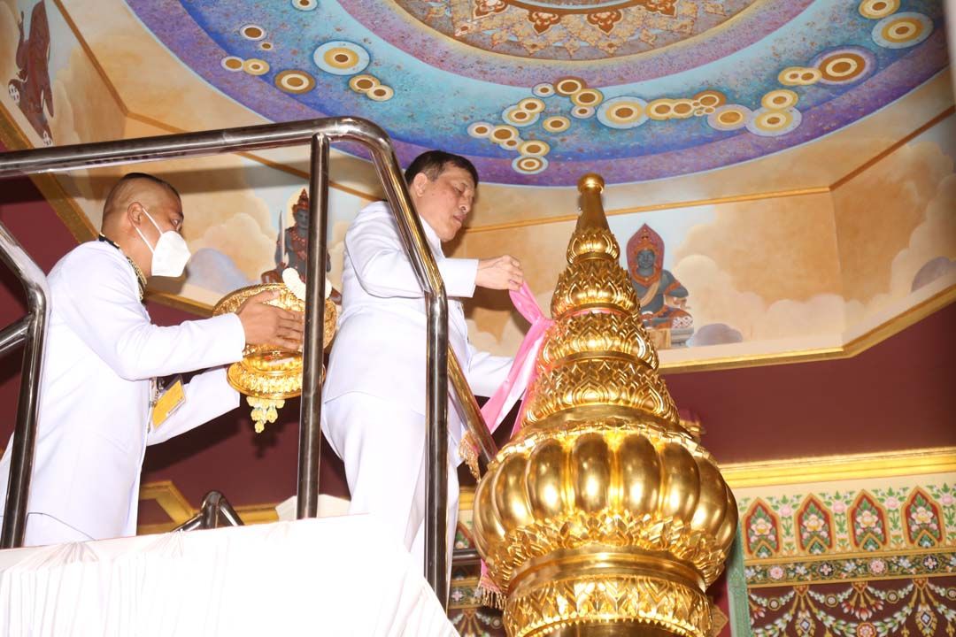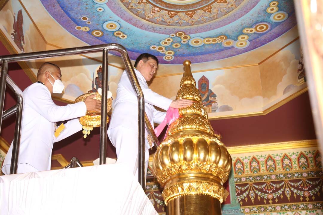 จากนั้น พระราชทานพระบรมราชวโรกาสให้ นายทศพล สวัสดิสุข รองผู้ว่าราชการจังหวัดนราธิวาส เฝ้าฯทูลเกล้าทูลกระหม่อมถวายแผ่นศิลา ทรงลงพระปรมาภิไธย และพระนามาภิไธยในแผ่นศิลา ต่อจากนั้น เสด็จพระราชดำเนินไปทรงกราบที่หน้าเครื่องนมัสการ ทรงลาพระสงฆ์ แล้วเสด็จออกจากพลับพลาพิธี ไปทรงปลูกต้นตะเคียนชันตาแมว ซึ่งเป็นต้นไม้ประจำจังหวัดนราธิวาส สมควรแก่เวลา จึงประทับรถยนต์พระที่นั่ง เสด็จพระราชดำเนินไปยังท่าอากาศยานนราธิวาส แล้วประทับเครื่องบินพระที่นั่ง เสด็จพระราชดำเนินกลับกรุงเทพมหานคร
