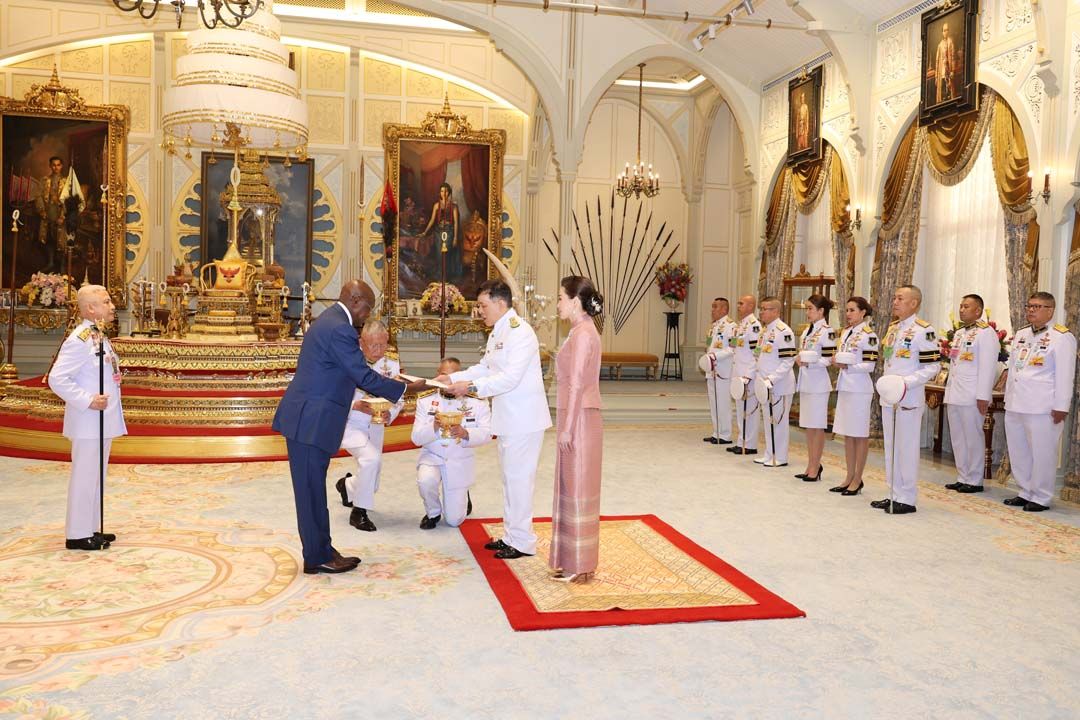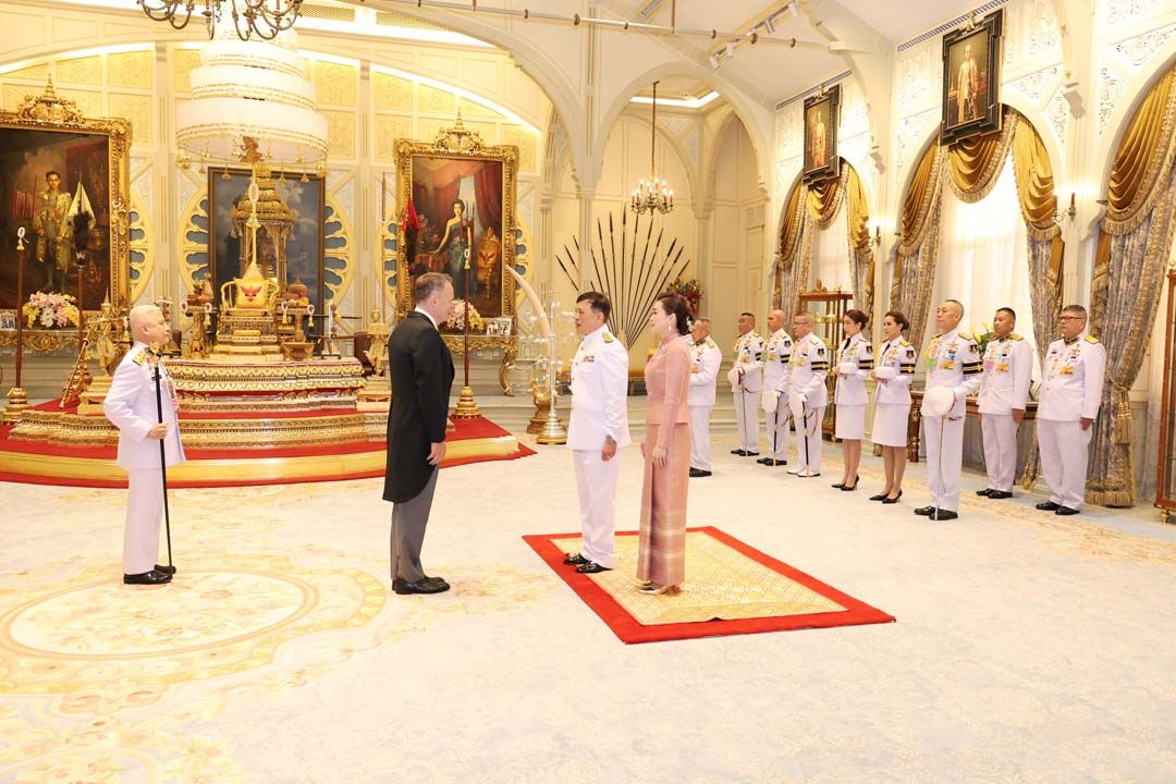 เมื่อเวลา 17.05 น.วันที่ 9 ตุลาคม 2568 พระบาทสมเด็จพระเจ้าอยู่หัว และสมเด็จพระนางเจ้าฯ พระบรมราชินี เสด็จออก ณ พระที่นั่งอัมพรสถาน พระราชวังดุสิต พระราชทานพระบรมราชวโรกาสให้เอกอัครราชทูตต่างประเทศประจำประเทศไทย เฝ้าทูลละอองธุลีพระบาท ถวายอักษรสาส์นตราตั้ง ตามลำดับดังนี้