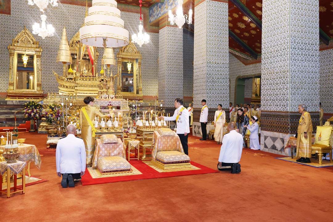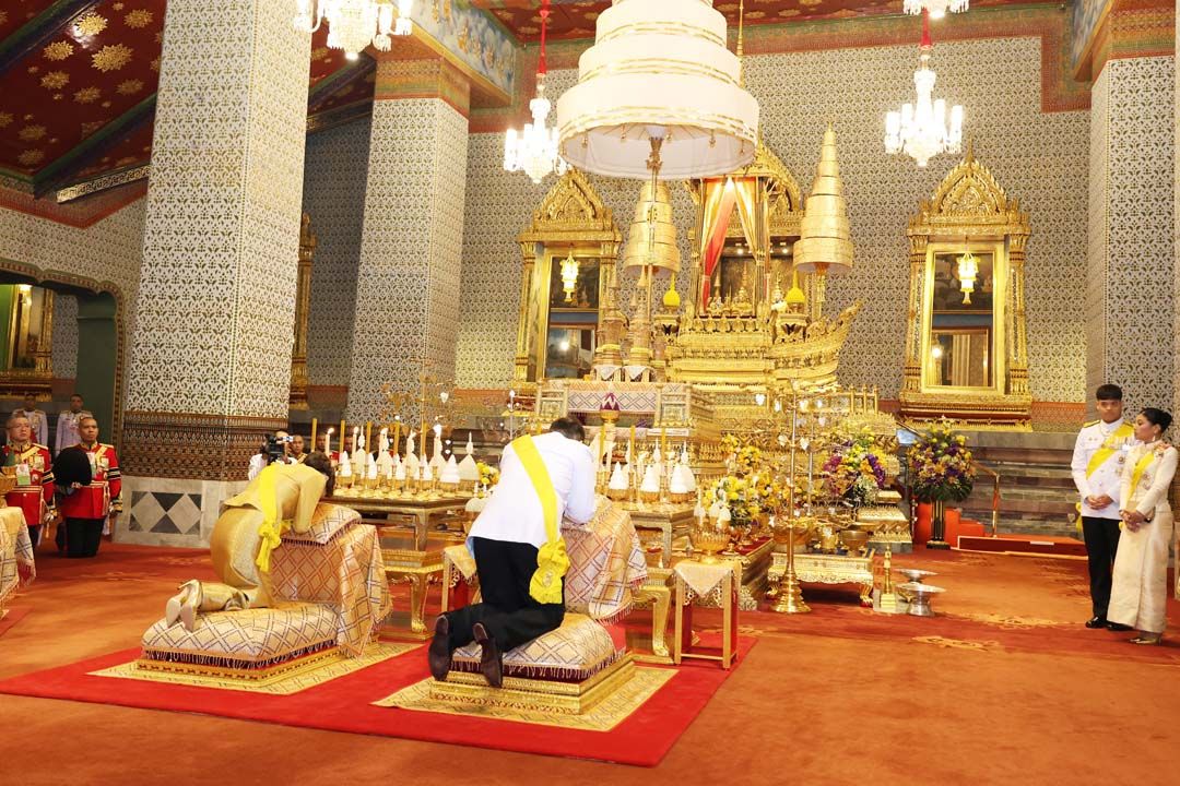 จากนั้น ทรงกราบพระพุทธปฏิมาชัยวัฒน์ รัชกาลที่ 9 พระพุทธมหาราช ฉ ปริวัตน์ พระพุทธรูปประจำพระชนมวารของพระบรมอัฐิพระบาทสมเด็จพระบรมชนกาธิเบศร มหาภูมิพลอดุลยเดชมหาราช บรมนาถบพิตร และพระบาทสมเด็จพระปรเมนทรมหาอานันทมหิดล พระอัฐมรามาธิบดินทร พระพุทธรูปประจำพระชนมวารของพระอัฐิสมเด็จพระมหิตลาธิเบศร อดุลยเดชวิกรม พระบรมราชชนก สมเด็จพระศรีนครินทราบรมราชชนนี และสมเด็จพระเจ้าพี่นางเธอ เจ้าฟ้ากัลยาณิวัฒนา กรมหลวงนราธิวาสราชนครินทร์ ที่หน้าพระที่นั่งบุษบกมาลา เสร็จแล้ว พระบาทสมเด็จพระเจ้าอยู่หัว และสมเด็จพระนางเจ้าฯ พระบรมราชินี ทรงกราบถวายบังคมพระบรมอัฐิพระบาทสมเด็จพระบรมชนกาธิเบศร มหาภูมิพลอดุลยเดชมหาราช บรมนาถบพิตร และพระบาทสมเด็จพระปรเมนทรมหาอานันทมหิดล พระอัฐมรามาธิบดินทร พระอัฐิสมเด็จพระมหิตลาธิเบศร อดุลยเดชวิกรม พระบรมราชชนก สมเด็จพระศรีนครินทราบรมราชชนนี และสมเด็จพระเจ้าพี่นางเธอ เจ้าฟ้ากัลยาณิวัฒนา กรมหลวงนราธิวาสราชนครินทร์ ที่หน้าพระแท่นพระนพปฎลมหาเศวตฉัตร ทรงรับการถวายความเคารพของผู้มาเฝ้าทูลละอองธุลีพระบาท แล้วเสด็จออกจากพระที่นั่งอมรินทรวินิจฉัย ประทับรถยนต์พระที่นั่งเสด็จพระราชดำเนินกลับ