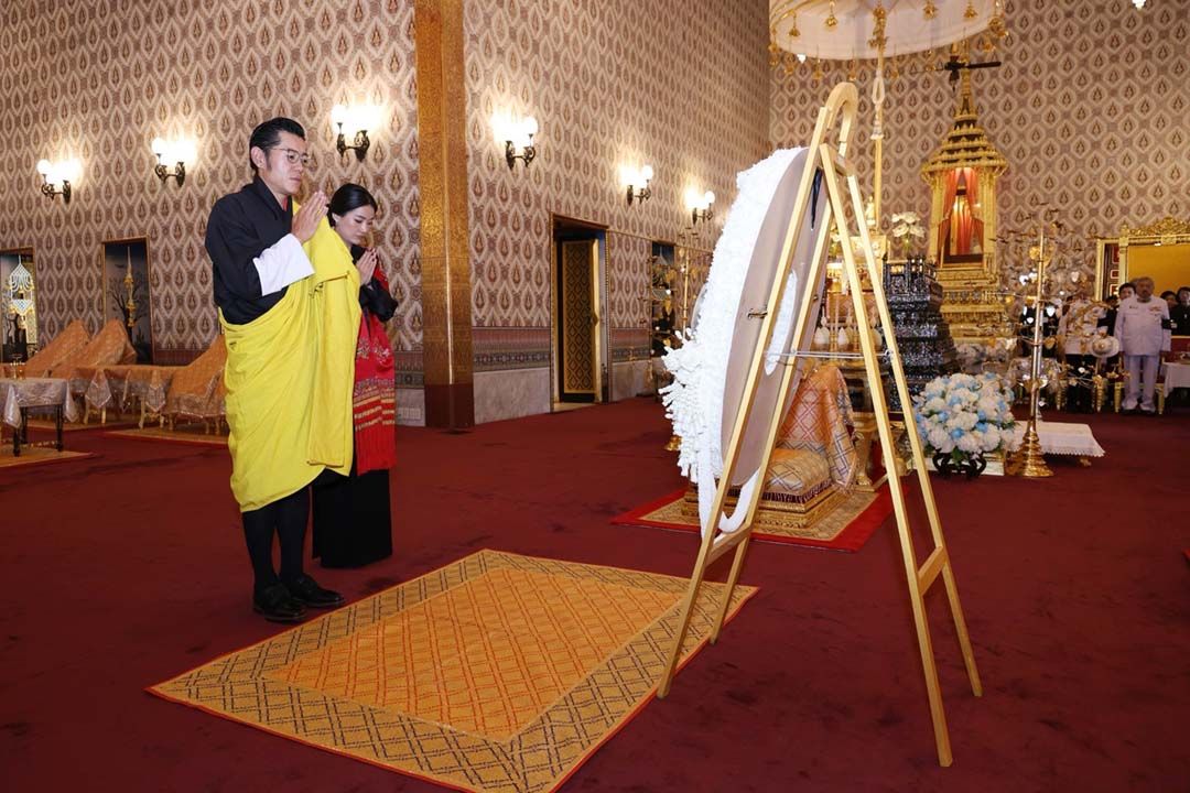 สมเด็จพระราชาธิบดี และสมเด็จพระราชินีแห่งราชอาณาจักรภูฏาน เสด็จฯมาทรงวางพวงมาลาถวายราชสักการะพระบรมศพ"สมเด็จพระพันปีหลวง"