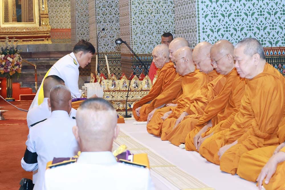 ต่อจากนั้น พระบาทสมเด็จพระเจ้าอยู่หัว ทรงพระกรุณาโปรดเกล้าโปรดกระหม่อมให้ สมเด็จพระนางเจ้า ฯ พระบรมราชินี เสด็จพระราชดำเนินไปทรงจุดธูปเทียนเครื่องทองน้อยที่หน้าพระแท่นพระนพปฎลมหาเศวตฉัตร สำหรับพระบรมอัฐิทรงธรรม พระธรรมวชิรญาณโสภณ ผู้ช่วยเจ้าอาวาสวัดบวรนิเวศวิหาร ถวายศีล และถวายพระธรรมเทศนา เรื่อง “มหาธีรราชจริยากถา” จบแล้ว พระบาทสมเด็จพระเจ้าอยู่หัว ทรงประเคนจตุปัจจัยไทยธรรมบูชากัณฑ์เทศน์ ทรงทอดผ้าไตร จำนวน 16 ไตร และทรงถวายย่ามที่ระลึก ฯ แด่พระสงฆ์ที่สวดพระพุทธมนต์ และถวายพระธรรมเทศนา แล้วพระสงฆ์สดับปกรณ์พระบรมอัฐิ ทรงหลั่งทักษิโณทก พระสงฆ์ถวายอนุโมทนา ถวายอดิเรก ถวายพระพรลา จากนั้น ทรงทอดผ้าไตร และทรงถวายย่ามที่ระลึก ฯ แด่พระสงฆ์สดับปกรณ์ ทรงปฏิบัติเช่นนี้จบครบ 30 ไตร เสร็จแล้ว ทรงกราบพระพุทธปฏิมาชัยวัฒน์ ประจำรัชกาลที่ 6 และพระพุทธรูปประจำพระชนมวารของพระบรมอัฐิ พระบาทสมเด็จพระปรเมนทรรามาธิบดีศรีสินทรมหาวชิราวุธ พระมงกุฎเกล้าเจ้าอยู่หัว พระมหาธีรราชเจ้า ที่หน้าพระที่นั่งบุษบกมาลา