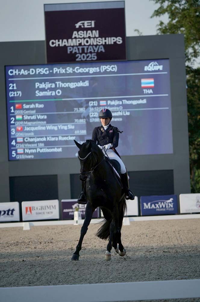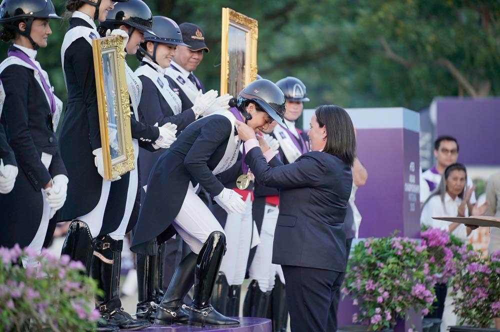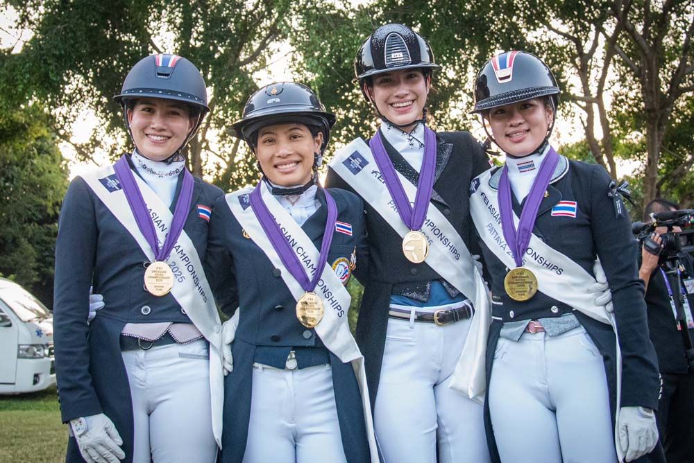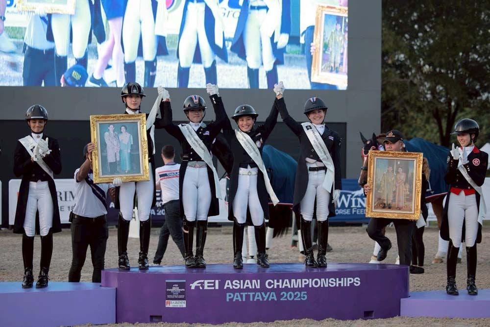 สมเด็จพระเจ้าลูกเธอ เจ้าฟ้าสิริวัณณวรี นารีรัตนราชกัญญา ทรงนำทัพนักกีฬาขี่ม้าไทย คว้าเหรียญทอง ศิลปะบังคับม้า (Dressage) ประเภททีม ประเดิมการแข่งขันขี่ม้าชิงแชมป์เอเชีย ครั้งที่ 2 รายการ “FEI Asian Championships Pattaya 2025” โดยสมาคมกีฬาขี่ม้าแห่งประเทศไทย เป็นเจ้าภาพจัดการแข่งขัน สนาม ไทยโปโล แอนด์ อีเควสเทรียน คลับ พัทยา เมื่อวันที่ 25 พฤศจิกายน 2568 ที่ผ่านมา