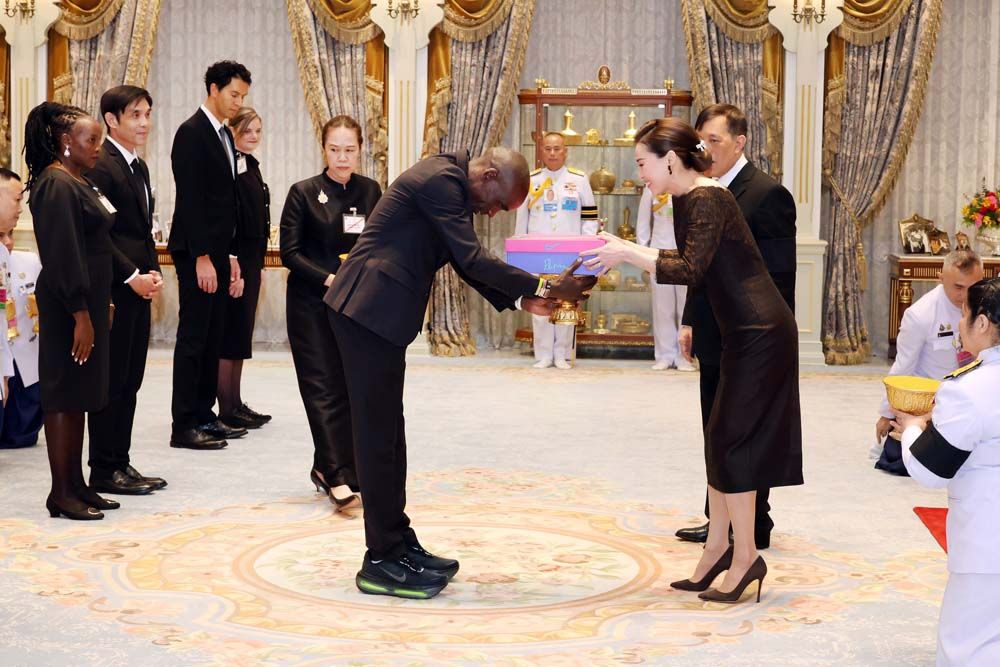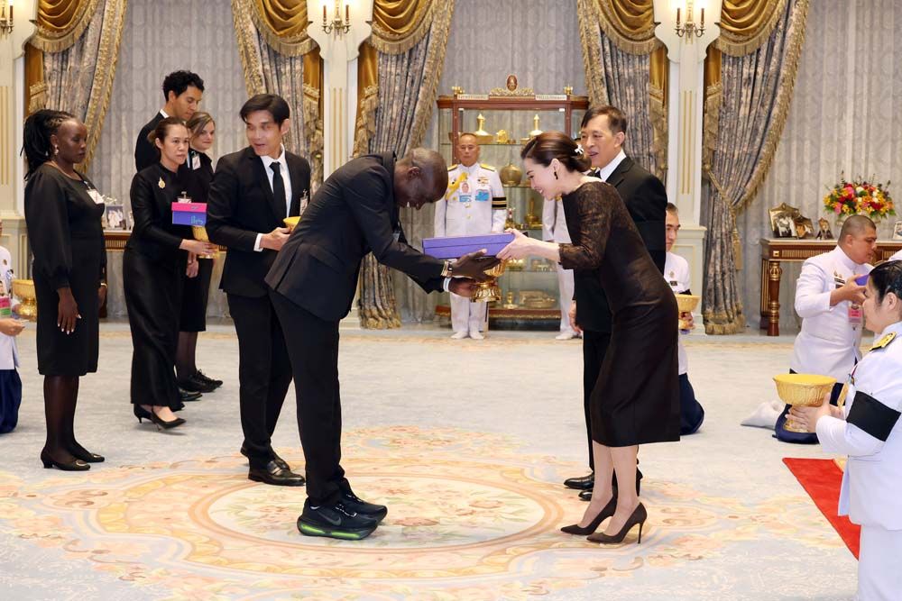 ร้อยเอก ธรรมนัส พรหมเผ่า รองนายกรัฐมนตรี นำ นายเอเลียด คิปโชเก้ (Mr. Eliud Kipchoge) นักวิ่งมาราธอนชาวเคนยา เหรียญทองโอลิมปิก และคณะ เฝ้าทูลละอองธุลีพระบาท ทูลเกล้าทูลกระหม่อมถวายชุดวอร์ม และรองเท้าวิ่ง รุ่นพิเศษ แด่พระบาทสมเด็จพระเจ้าอยู่หัว และสมเด็จพระนางเจ้า ฯ พระบรมราชินี