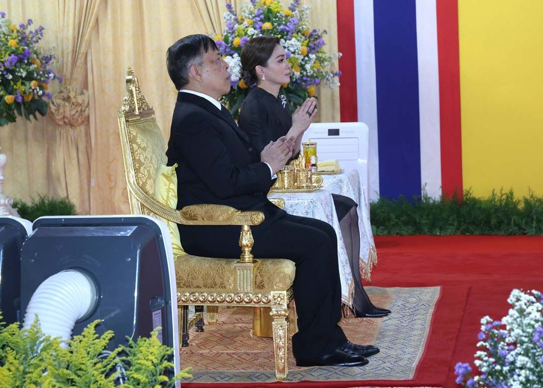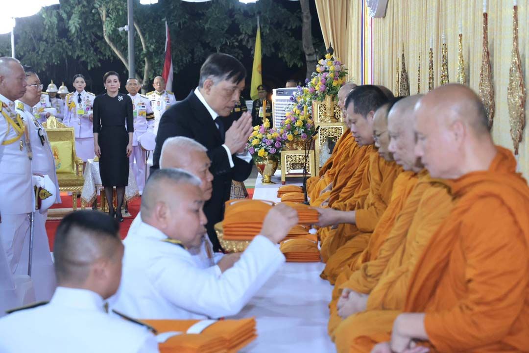 จากนั้น เสด็จพระราชดำเนินไปยังแท่นพิธี ทรงกดปุ่มไฟฟ้าเปิดแพรคลุมป้ายอาคารเรียนรู้เฉลิมพระเกียรติ 72 พรรษา พระสงฆ์เจริญชัยมงคลคาถา ทรงประเคนจตุปัจจัยไทยธรรมถวายพระสงฆ์ ทรงหลั่งทักษิโณทก พระสงฆ์ถวายอนุโมทนา ถวายอดิเรก