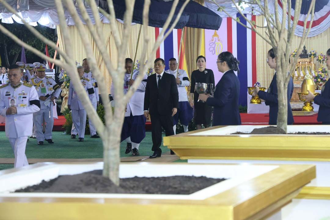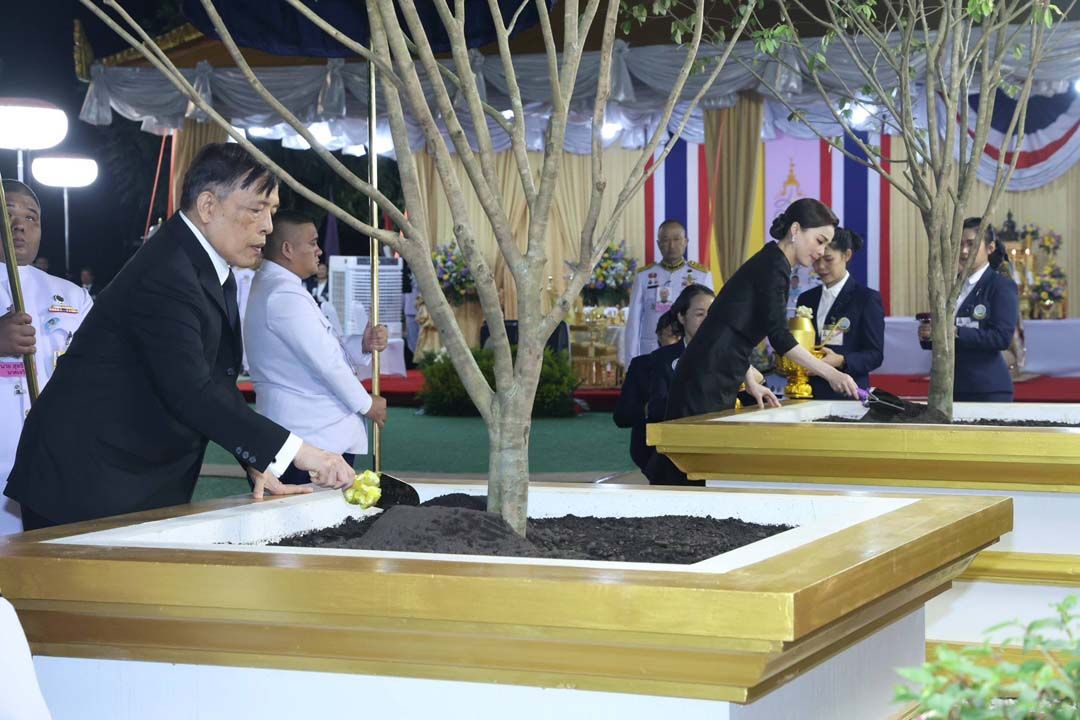 เสร็จแล้ว พระราชทานพระบรมราชวโรกาสให้ เลขาธิการและประธานกรรมการบริหารมูลนิธิโครงการหลวง กราบบังคมทูลเบิกผู้ให้การสนับสนุนการก่อสร้างอาคารเรียนรู้เฉลิมพระเกียรติ 72 พรรษา เฝ้าทูลละอองธุลีพระบาท รับพระราชทานของที่ระลึกตามลำดับ และพระราชทานพระบรมราชวโรกาสให้ นายนาวิน สุขเลิศ หัวหน้าฝ่ายบริหารผลิตผลและผลิตภัณฑ์ เฝ้าทูลละอองธุลีพระบาท ทูลเกล้าทูลกระหม่อมถวายแผ่นศิลา เพื่อทรงลงพระปรมาภิไธย และพระนามาภิไธย จากนั้น เสด็จพระราชดำเนินไปทรงกราบที่หน้าเครื่องนมัสการ ทรงลาพระสงฆ์ แล้วเสด็จออกจากพลับพลาพิธี เสด็จพระราชดำเนินไปทรงปลูกต้นรวงผึ้ง ไว้เป็นที่ระลึก