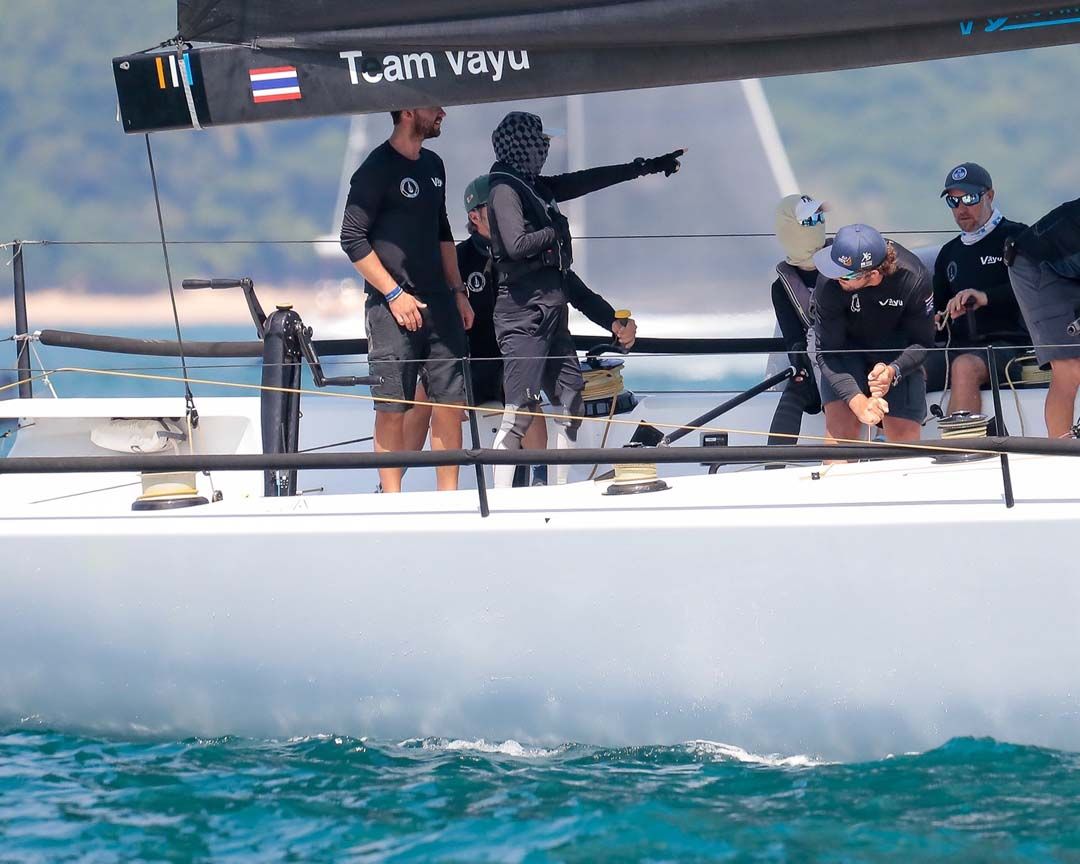โดยการแข่งขันเรือใบนานาชาติประเภท IRCZero วันนี้ เป็นการแข่งขันเก็บคะแนนในเรซที่ 3 และเรซที่ 4 ทีมเรือใบวายุ หมายเลขใบเรือ THA 72 ซึ่งสมเด็จพระนางเจ้าฯ พระบรมราชินี ทรงทำหน้าที่เป็นผู้บังคับหางเสือเรือ ทรงใช้ทักษะด้านการคำณวนทิศทางลมและน้ำที่เปลี่ยนแปลงในทะเล เพื่อบังคับหางเสือให้ไปในทิศทางที่ต้องการได้อย่างรวดเร็ว ซึ่งหางเสือเรือมีความสำคัญอย่างยิ่งต่อการนำทางและการควบคุมการเคลื่อนที่ของเรือได้อย่างมีประสิทธิภาพ